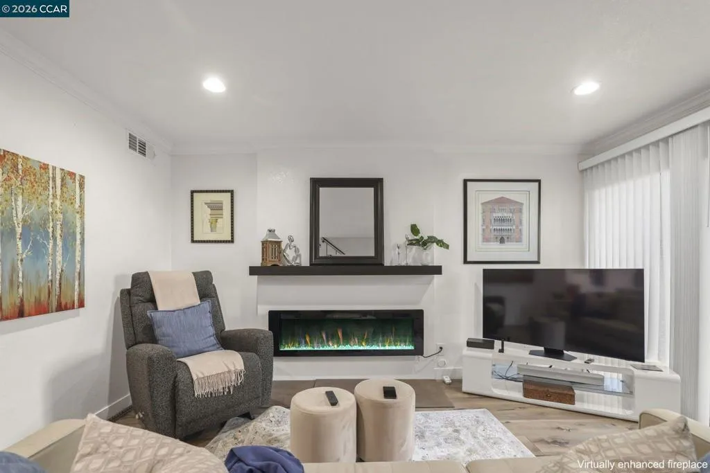 Searching for a stylish, private end-unit townhome that truly stands out? This is the one you’ve been waiting for! Tucked quietly at the back of the complex, this beautifully remodeled home offers the perfect blend of comfort, charm, and versatility—ideal as your own retreat or a savvy investment. Inside you will find thoughtful upgrades, including laminate flooring, elegant crown molding, recessed lighting, and 2 new patio sliders. The cozy, color-changing fireplace is great for both ambiance and extra warmth (optional). The kitchen shines with quartz countertops, a pantry, and a cleverly hidden full-size washer and dryer tucked behind a stylish barn door. The community invites you to relax and enjoy its resort-style amenities, including a pool, clubhouse, tennis & pickleball courts, EV charging, and beautifully maintained grounds perfect for dog walking and evening strolls. And the location? It doesn’t get much better! With the Iron Horse Trail just steps away and easy access to BART, freeways, John Muir Hospital, Heather Farms Park, Diablo Hills Golf Course, and all the shopping, dining, and energy that downtown Walnut Creek has to offer, the location is the cherry on top. Truly special...don't let this one slip away!