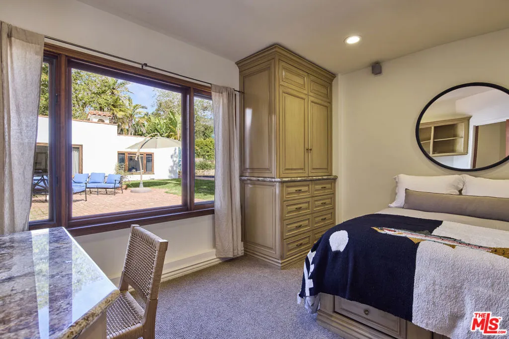 This magical 1.3-acre Spanish-style estate offers a serene escape in Ramirez Canyon, one of Malibu's most private, gated communities. Nestled amongst majestic oak trees and a babbling creek, this hidden gem provides unmatched tranquility just minutes from Paradise Cove Beach. The single-story home features a grand formal living room with vaulted ceilings and a cozy fireplace, flowing seamlessly into a gourmet kitchen with a spacious island and dining area with an additional fireplace. The primary suite boasts three closets and two beautifully appointed bathrooms, one with a steam shower and the other with a clawfoot tub beside a fireplace for relaxation. Three additional bedrooms and two flexible spaces accommodate a variety of lifestyle needs. Expansive windows throughout the home showcase manicured grounds, a private citrus orchard, and multiple entertaining areas, including a large patio, flat grassy lawns, a pool, spa, and a newly built glass-and-steel greenhouse. As a valuable bonus, the home is equipped with a full-house generator, ensuring uninterrupted comfort. This estate offers the perfect balance of seclusion and convenience - a rare opportunity in Ramirez Canyon.