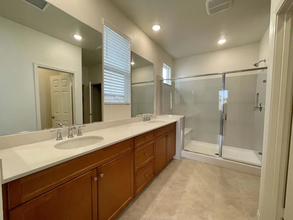 This solar panel home is located in the 55 and Better Community of Four Seasons at Terra Lago. Residents have access to amenities such as a clubhouse and fitness center. The home features tile flooring, window coverings, and carpeted bedrooms. The kitchen includes stainless-steel appliances, ample counter space, an extra-large pantry, and attractive cabinetry. The main bedroom offers a spacious bathroom with dual vanities and a large closet. Guest bedrooms and bathrooms are situated on the opposite side of the home for privacy. A third room may serve as an office. The property also includes a separate laundry room with storage cabinets and a large interior storage room for versatile use.
