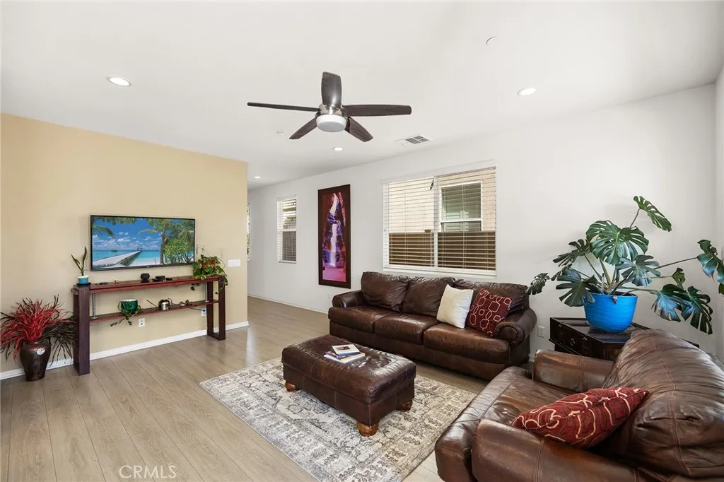 Gorgeous turnkey home in highly sought after Cedar Glen community of Chapman Heights with views of the golf course and mountains! This spacious 4 bedroom, 3 bathroom home with a bonus loft, offers a main floor bedroom and bathroom ideal for multi generational living. From the moment you enter, the open floor plan and high ceilings flow from the entry way into the great room showcasing luxury vinyl plank flooring and abundant natural light throughout. The great room merges with the dining area and an oversized chef’s kitchen. The kitchen features granite countertops, extended white cabinets and stainless steel appliances and a large kitchen island with extra seating. This area is great for entertaining and it overlooks the beautifully landscape patio complete with patio cover, stamped concrete, water fountains and terraced flower beds plus the privacy of no rear neighbors. Upstairs, you will find the oversized primary bedroom suite with views of the beautiful golf course, mountains, and hiking trail, as well as Two walk-in closets, and A primary bathroom featuring a walk in shower, a soaking tub and quartz countertops with double sinks. There also two other well appointed bedrooms and a bathroom that is also open to the ample bonus loft/area for more entertaining space. This home boasts many upgrades such as: LVP throughout downstairs and wet areas, stone look tile in the laundry room, upgraded carpet, ceiling fans throughout, garage storage, motion sensor lighting, premium privacy lot, neutral paint tones, window treatments and screens, tankless water heater and many more features to list. Located within walking distance of shopping, dining and trails, while boasting a low maintenance backyard and HOA maintained front yard, this home offers a relaxed lifestyle only footsteps away from the great outdoors.