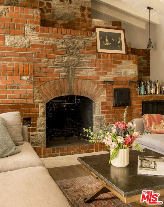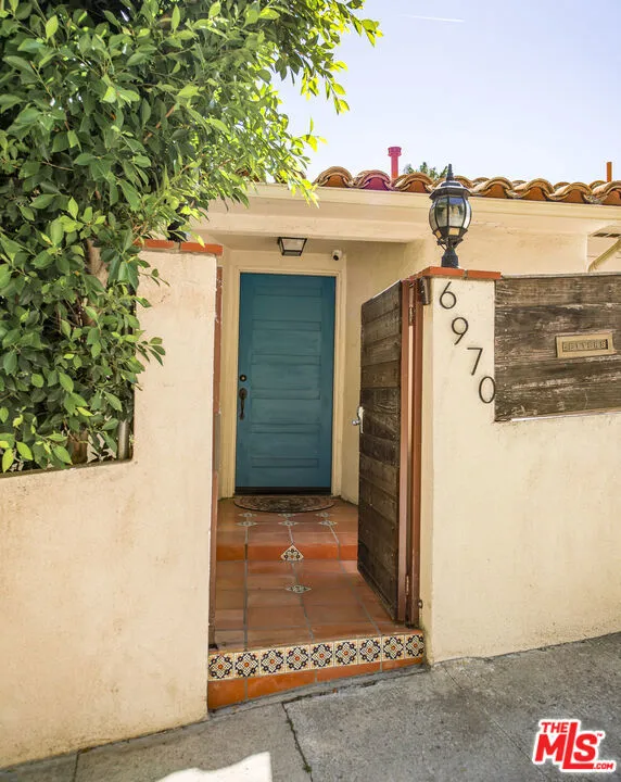 Move-in ready Contemporary Mediterranean located in the highly desirable Outpost Estates area of the Hollywood Hills. This beautifully updated two-level home offers spacious living, abundant natural light, and peaceful canyon surroundings while being just minutes from the energy of Hollywood.The main level features an open-concept living and dining area that flows into a fully remodeled Italian kitchen with Taj Mahal stone countertops, top-of-the-line Miele appliances, custom cabinetry, and a peninsula layout ideal for casual dining. An entire wall of double-pane windows fills the space with natural light while framing peek-a-boo city lights and canyon views.A dramatic den or great room with exposed beam vaulted ceilings and a striking floor-to-ceiling brick fireplace provides the perfect setting for a screening room, media lounge, or game room.The home offers 3 bedrooms and 2 updated bathrooms, including a primary suite with a spa-inspired bath featuring a soaking tub, separate shower, and dual sinks. Wide plank American oak floors, recessed lighting, plantation shutters, central heat and air, and a newer roof add to the home's comfort and style.The lower level features a separate-entry space ideal for guest quarters, studio, office, or in-law suite. A private patio and secure yard provide outdoor space for entertaining or pets, along with a direct-access two-car garage.Located just minutes from the Hollywood Bowl, Sunset Blvd, Hollywood & Highland, the Dolby Theatre, Metro station, and the best of Hollywood, this home offers the perfect balance of hillside tranquility and city convenience.