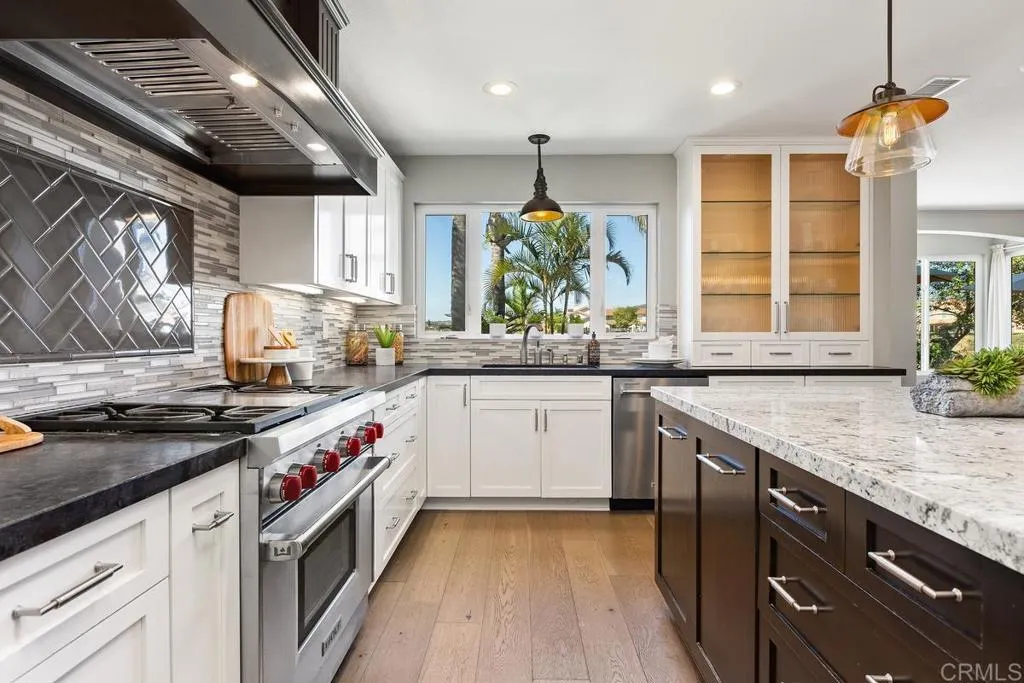 Welcome to this elegantly updated Rancho Penasquitos residence showcasing 4 bedrooms, 3 baths, and 2,562 sq ft of refined living. The home features vaulted ceilings, abundant natural light, and a seamless layout anchored by a fully remodeled chef’s kitchen with stylish finishes and exceptional functionality. A full bedroom and bath on the main level provide outstanding flexibility. Upstairs, the primary suite offers serene territorial views and a beautifully updated bath retreat. Primary bathroom has been completely remodeled, elevating the home’s comfort and aesthetic. Beautiful elevated views from the backyard patio—open, peaceful, and perfect for outdoor living. Set on a 6,490 sq ft lot with a 3 car garage, this home sits in a quiet enclave with a low monthly HOA and access to award winning Poway Unified schools.