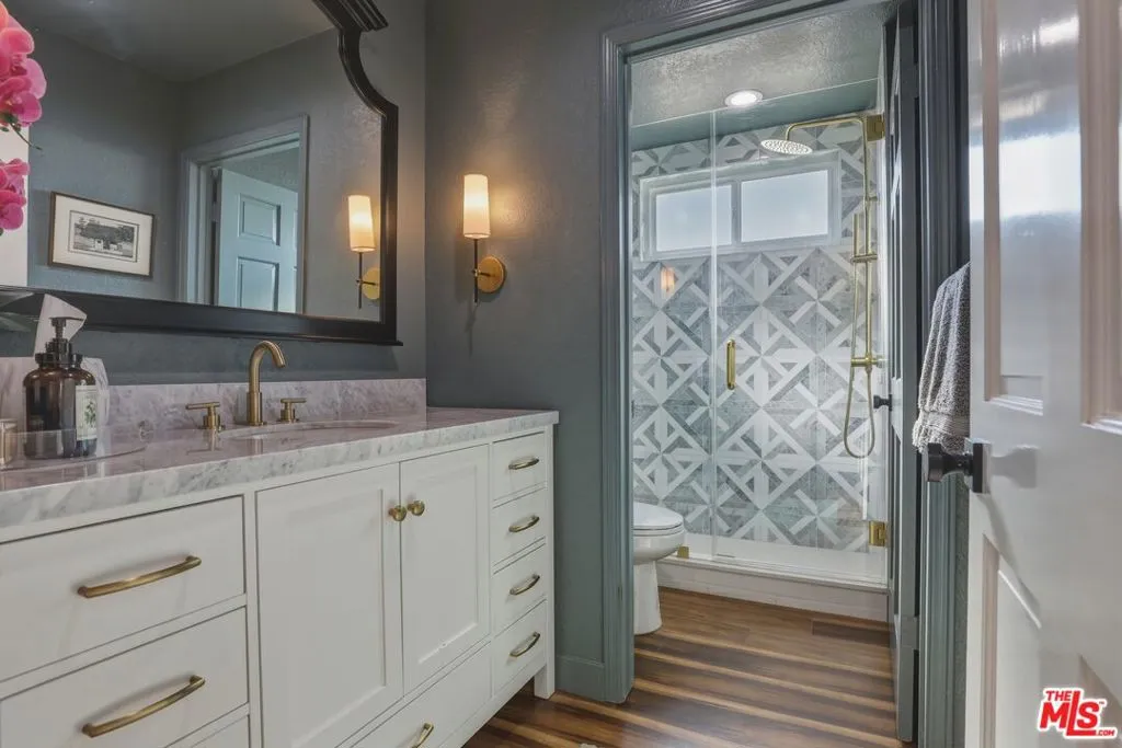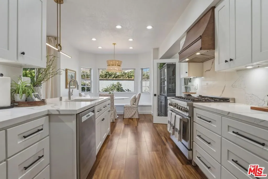 Conveniently located in the highly sought-after Lewis Home corridor of Playa Del Rey, this beautifully renovated 4-bedroom, 3-bathroom residence features the largest Lewis Home floorplan, highlighted by an expansive 800 sqft primary suite. Situated on an over 5,000 sqft lot, this exceptional home blends modern upgrades with timeless comfort, showcasing wood floors, dramatic 18-foot ceilings, and abundant natural light throughout. Custom built-ins, updated doors and hardware, skylights, and designer window coverings elevate the home's sophisticated aesthetic. The main living area offers a bright and inviting living room anchored by a marble fireplace, flowing seamlessly into the adjacent dining area, ideal for both everyday living and entertaining. Designed for effortless indoor-outdoor living, the open-concept layout leads directly to a lush, private backyard retreat. Surrounded by mature landscaping including wisteria, camelia trees, lime and lemon trees, the outdoor space provides a serene setting for relaxation or entertaining. The updated chef's kitchen is a true showpiece, featuring white shaker cabinetry, LED under-cabinet lighting, a ZLINE range, Bosch dishwasher, and a stunning waterfall-edge countertop. A custom walnut hood cover adds warmth and character, while the breakfast bar, walk-in pantry, and eat-in dining nook with custom built-in bench seating, hidden storage, and garden views complete this thoughtfully designed space. The first floor includes a versatile bedroom or office with a custom-built closet, along with a renovated bathroom, perfect for guests or flexible living. Upstairs, the luxurious primary suite serves as a private retreat, complete with a marble fireplace, oversized walk-in closet, and a spa-inspired en-suite bathroom featuring dual vanities, a soaking tub, and a separate shower. Two additional bedrooms and a fully renovated bathroom with dual sinks complete the upper level. Additional highlights include a dedicated laundry room with a high-capacity laundry sink, central air and heat, an attached 3-car garage with EV charger, portable sauna, and a Google/Nest Vivint smart home security system with cameras. Ideally located near the beach, top-rated restaurants, scenic cycling paths, and vibrant coastal amenities, this home offers the best of Playa Del Rey living, where comfort, style, and location come together.