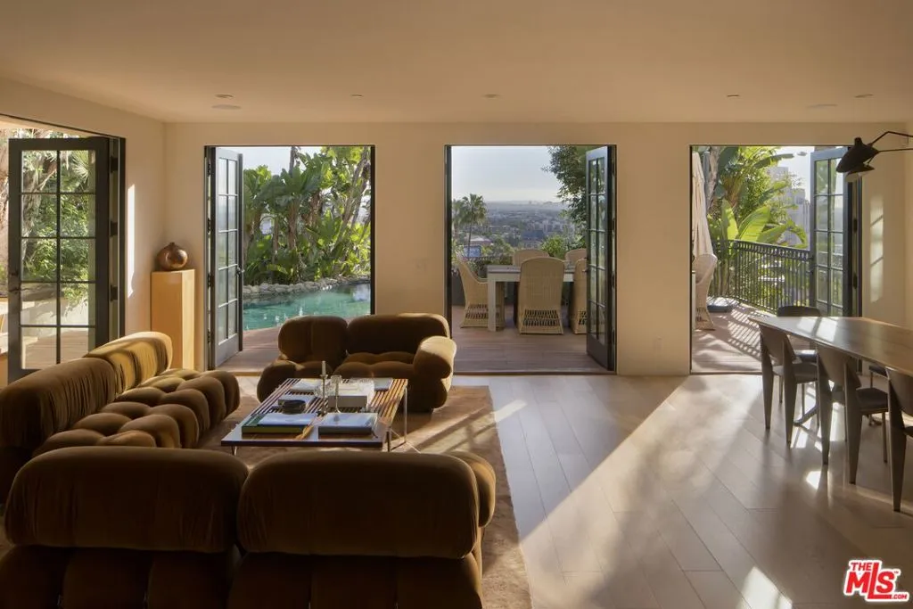 Perched above the Sunset Strip in the Hollywood Hills, this ultra-private 1923 Spanish compound offers sweeping views from the mountains to the Pacific Ocean. Recently reimagined, the estate blends original period character with curated designer finishes, including Belgian bluestone countertops, white oak floors, coved ceilings, Viking appliances, and Waterworks fixtures.The sun-filled family room, framed by five sets of French doors, opens to a resort-style setting with a saltwater pool and spa, koi fountain, tennis court, mature landscaping, and panoramic city views. The home features four en-suite bedrooms, an office, outdoor gym, and an entertainment room with billiardsideal for both relaxing and entertaining.Set behind a long, gated drive with parking for over ten vehicles, the property is moments from the Sunset Tower Hotel, Chateau Marmont, and the iconic Sunset Strip, while remaining completely private. Furniture included in lease may vary from what is shown in pictures. Property privately available for sale as well asking $7,495,000