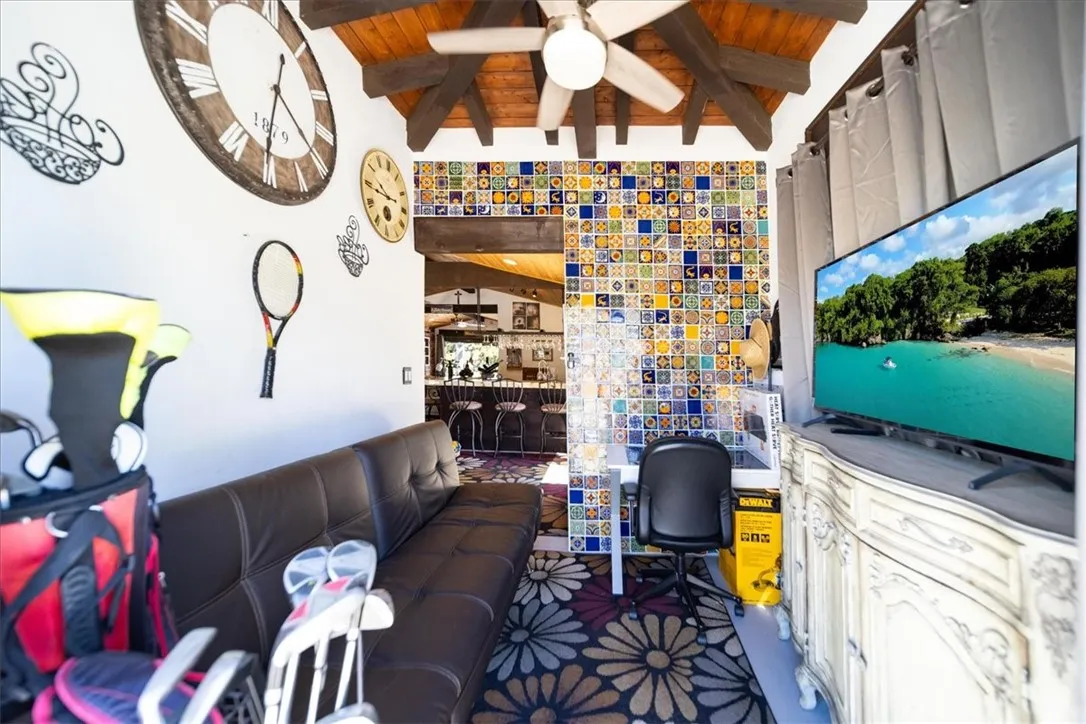 Casablanca is a truly one-of-a-kind lot within the resort, offering an exceptional blend of luxury, functionality, and outdoor living. The expansive kitchen area is a standout feature, complete with gorgeous granite countertops, beautifully crafted cabinetry, three additional beverage refrigerators, and a full-size residential refrigerator conveniently located next to the stove. A large serving island and a separate island/bar area provide the perfect setup for entertaining family and guests. A custom double-screen entry with remote-controlled screens welcomes you into a thoughtfully designed layout that includes a fully screened-in office space and a spacious family room. From here, enjoy tranquil views of the pond and your outdoor living area. Additional remote screens open seamlessly to the RV area and backyard, creating effortless indoor-outdoor flow. The rear of the property overlooks a peaceful pond with water feature and the golf course, delivering a true resort-style atmosphere. Situated on a desirable corner lot, this property offers the added benefit of extra parking—an uncommon and highly sought-after feature within the resort. Located in the highly desirable Rancho California RV Resort, a gated and 24/7 guard-controlled community, residents enjoy access to a 14-hole executive golf course (free for owners with unlimited use), 5 pools and multiple jacuzzi areas, tennis courts, pickleball courts, dog park, horseshoe lawn, laundry facilities, hiking trails, clubhouse, on-site restaurant, and market. HOA includes water, sewer, trash, and common area maintenance. This versatile property allows for full-time living, vacation use, or rental income potential. Enjoy peace, privacy, and resort-style living just minutes from Temecula Wine Country, with convenient access to San Diego, Oceanside, and Palm Springs. No age restrictions. Financing available. Schedule your private showing today and experience this hidden gem for yourself.