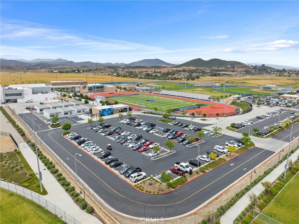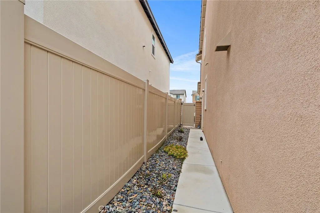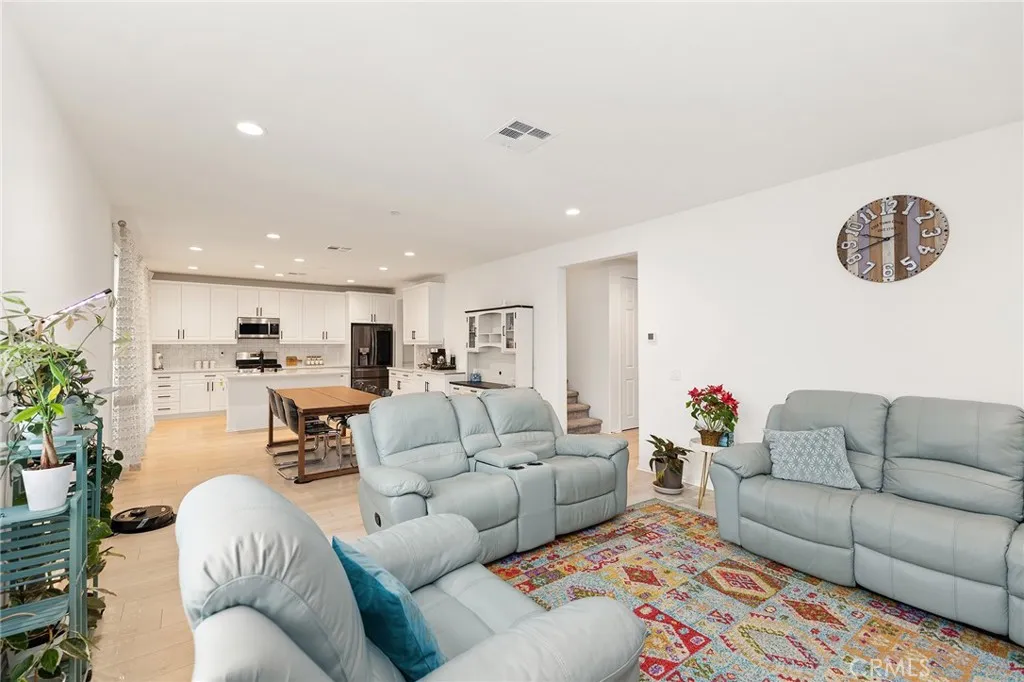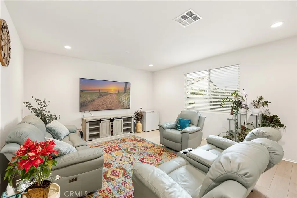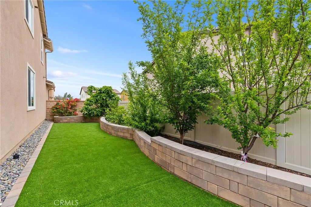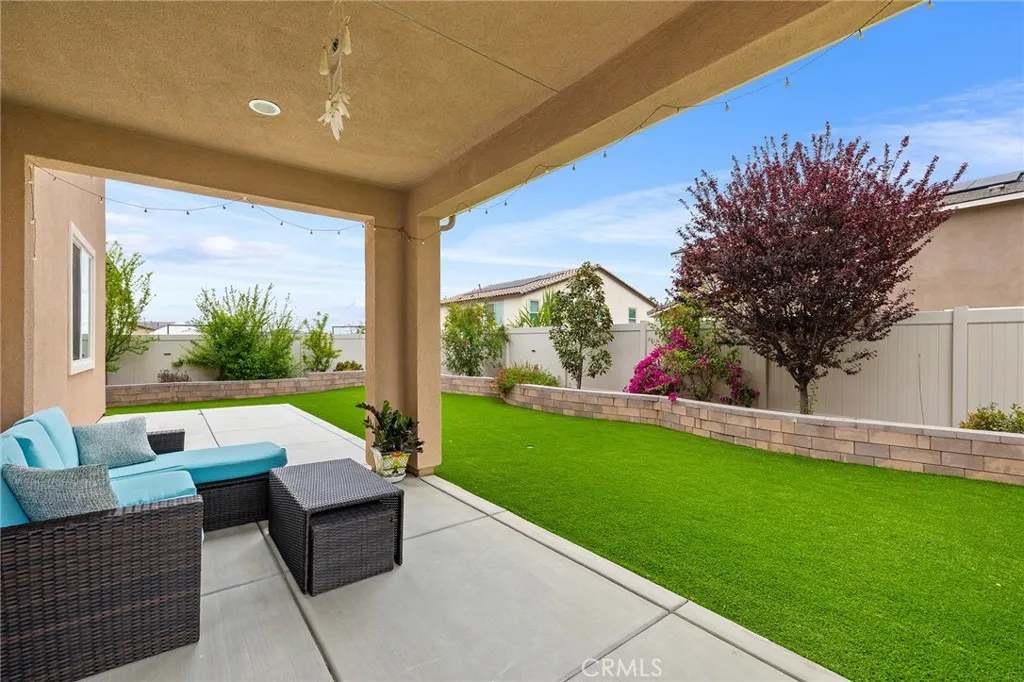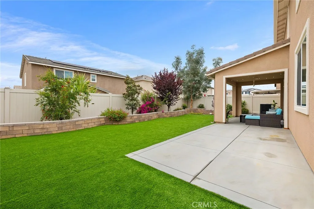Welcome to this beautifully move- in upgraded home in the heart of Menifee. Showcasing exceptional curb appeal with thoughtful designed low maintenance landscaping and covered entry. Step inside to a welcoming entryway featuring elegant double doors open to a flexible first floor room, this could be used as a bedroom or office room. Modern seamless laminate wood flooring throughout the main level. The thoughtful designed floor plan includes a dinning room, full bathroom, and open -concept upgraded kitchen.This beautifully designed kitchen features crisp white shaker cabinetry paired with sleek black hardware, along with stylish backsplash tile, spacious center island with quartz stone countertops, custom farm sink, plenty of cabinetry, walk in panty, and stainless steel appliances. Additional highlights includes FULYY PAID SOLAR (5.25 KW system with 15 PANELS on NEM 2.0) for energy efficiency and long term savings. Window blinds throughout the house, along with the spacious two -car garage that is upgraded with a sleek EPOXY coated floor, tankless water heater, and build in EV charger, offering both functionality and modern convenience. Step outside to a low maintenance backyard with covered California patio, lush of artificial turf and irrigation system, extended concreted and brick retaining wall. Additional upgrades include added gutters for improved drainage. Upstairs, you will find a spacious loft offers an open design with natural light, perfect for use a second living room, home office, playroom or media room. The upper level also features four bedrooms and large laundry room. The luxurious, spacious primary room serves as private retreat, featuring a beautifully designed walk in shower, linen closet, and expansive walk in closet. This turnkey home is located in amenity -rich community featuring pickleball court, basketball court, play ground, picnic area, soccer field, dog parks, and conveniently close to schools and shopping. Opportunities like this don't last- schedule your showing today.