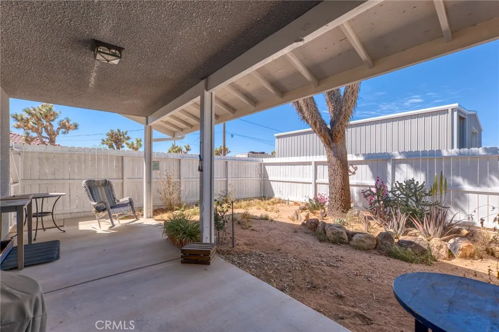 One of the cleanest and most inviting corner properties you’ll find, this home immediately stands out with its curb appeal, thoughtful upgrades, and private setting. Featuring both front and rear fencing, including a fully enclosed backyard with privacy fencing, this property is framed by mature trees and natural desert landscaping, creating a peaceful and secluded atmosphere. Enjoy your morning coffee on the front porch or unwind in the spacious rear patio area designed for relaxing and entertaining. Step inside to a bright, vibrant interior filled with natural light, custom painted walls, unique ceiling fans, dual-pane windows, and attractive wood style flooring that flows seamlessly throughout. The dining area connects beautifully to a stunning kitchen complete with custom painted cabinetry and a stylish tile backsplash, offering both charm and functionality. A wide hallway with built in storage cabinets adds convenience, while both bedrooms are well sized and inviting. The spacious two car garage provides plenty of room for vehicles, storage, or workspace. Out back, the private patio area is truly special, perfect for hosting gatherings or simply enjoying quiet desert evenings under the stars. This is a hidden gem that delivers comfort, style, and privacy all in one. A must-see property that you won’t want to miss, come experience it for yourself today.