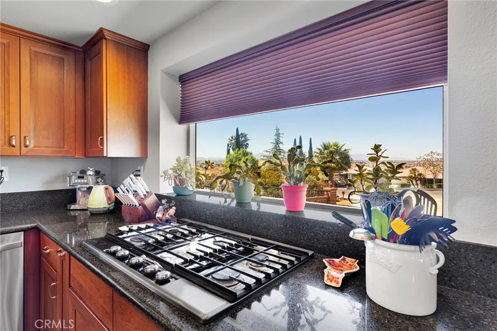 This house is an entertainer’s delight located in a very desirable area of Apple Valley on 1.38 acres on a quiet cul-de-sac. This place could easily serve two families or an extended family with its split design. Minutes from shopping & schools & close to the I-15.This 4,000+ sq/ft house boasts 7 bedrooms and 4 baths, built in wet bar with dual tap kegerator and plenty of liquor cabinets. Also has center island bar with separate wine refrigerator and canned drink refrigerator. Brick, wood burning & gas fireplace in main room. There are two Master Suites with ensuite bathrooms on opposite sides of the house, a 4 car finished garage with storage cabinets, a double gate RV access to a concrete RV pad with separate RV septic. An attached room off the garage makes for a great hobby room, tool room, art studio or even an 8th bedroom. The property boasts a separate outdoor tool/hobby/craft and storage room completely finished inside with air conditioning. Has a 74 panel Tesla solar system (owned) to help with energy efficiency, water filtration, soft water and Tankless hot water, RO filter in kitchen at the sink that also serves the refrigerator/ice maker. The main Master bathroom Suite has a 3 person spa to soak the day’s troubles away while watching your favorite TV show on the moisture proof TV in the corner. The walk-in shower has 8 water jets and an overhead rainfall shower-head. Granite countertops and glass shower enclosures in all bathrooms and granite countertop in kitchen. Laundry room has ample storage with access to a backyard oasis with outdoor TV, in-ground heated diving pool (20x40) with Pentair control panel to control from your electronic device. Pool is covered by a massive, professionally installed shade screen system covering back porch and half of pool. Professional Koi Pond with waterfall and 19 Koi fish, children’s playground with in-ground trampoline, wooden play set/swing set, slide & separate clubhouse. There is also a horse shoe pit and a professional batting cage with professional pitching machine that is lit for night batting practice when things cool off. Fenced off garden area with water faucet and a brand new greenhouse. Backyard is nicely landscaped with wired path lighting and block fire pit for enjoying those brisk autumn and winter evenings . Built-in, fenced elevated concrete area is plumbed with conduit for future outdoor kitchen/entertainment area. 8 foot split -face block wall around entire backyard.