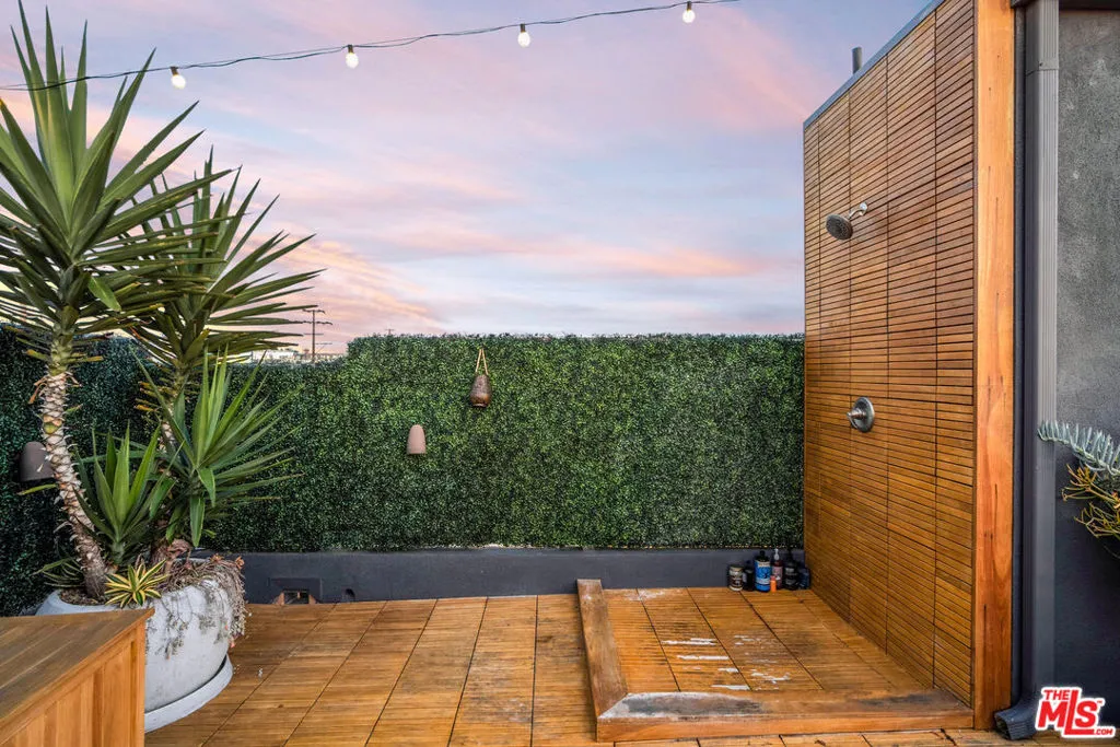 Introducing "The Venice Art House", a James Bond inspired architectural fully gated property in the heart of Venice. Between Abbott Kinney Boulevard and Lincoln, this compound is fully secured and private. The property features 3 beds and 3 full baths, with a rooftop outdoor shower, spa, infrared sauna, and custom sound. 11ft ceilings in the LR on the 2nd floor reach to 14ft in the open-concept kitchen with a stone bar, gigantic double-paned glass windows in the LR to limit sound, and ceiling to floor elegant custom drapes in the LR and BR. Black hardwood floors throughout, adorned with Timothy Oulton furniture set with vintage appointments, Miele appliances, thick steel beams, and elgantly bent iron railings. The first level features a 4-car garage, and a separate open studio space with its own entry and gate, polished concrete floors, rainfall shower, and it's own AC, kitchenette and washer/dryer. The house was built with sought after durability, including images of the build, and full blueprints. The spacious master bedroom offers British design, a beautiful custom walk-in closet, custom blackout drapes and curtains, and a private balcony. A spiral staircase above the kitchen leads to a library-movie room with four skylights, including one in the upper bathroom with full shower. A separate staircase from the LR leads to the rooftop deck featuring custom finished teak wood, lush California succulents and panoramic views from the palm tress in MDR to the hills above Sunset. Sun or work in privacy between the spa, fireplace and outdoor shower while listening to orchestra music above the city. The revenue from the separate studio and media area can be retained, currently ranging from $4,000-6,000/mo, or the entire main house can be leased for an additional projected $14,000-$15,000/mo or on VRBO and other platforms for more. With incredible versatility with LAC2 zoning, the entire three story property could also be transformed into a restaurant, lounge, gym, retreat spa, or media studio with remarkable possibilities. Rare LAC2 zoning with two addresses. This is one of the rarest gems in all of Venice, offering a unique blend of privacy and security while allowing you to fully enjoy life in the heart of Venice.
