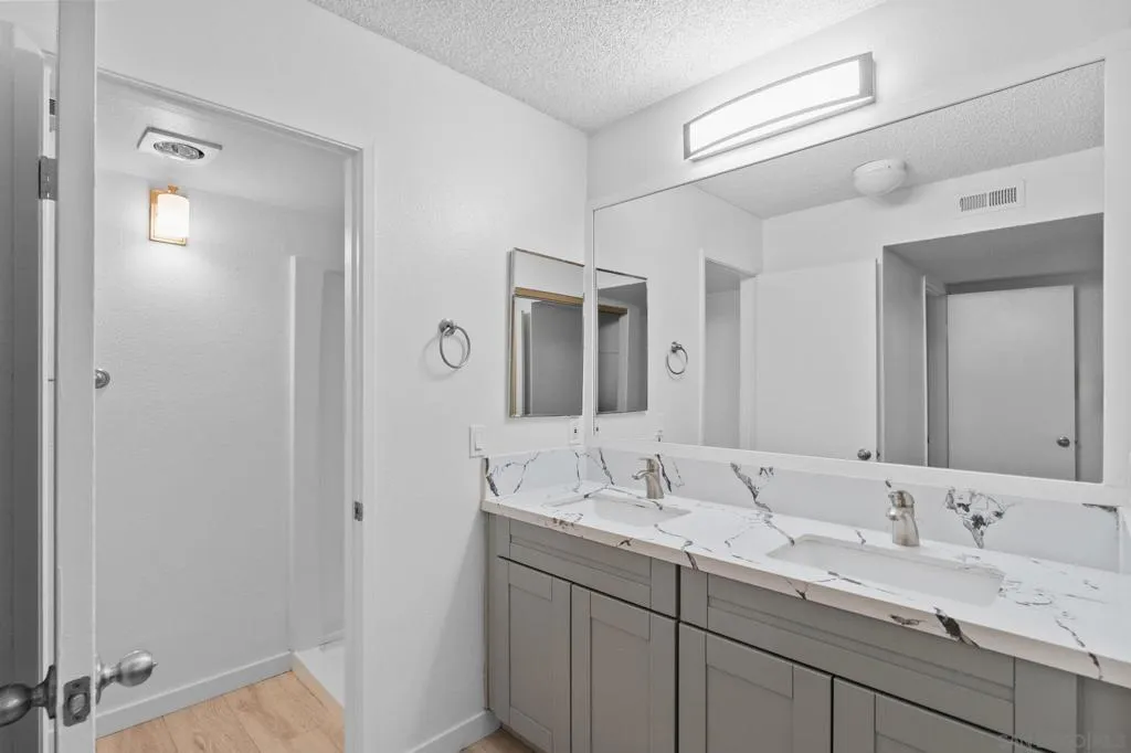 One of the largest private patios in the community, offering a rare extension of living space and added privacy. VA APPROVED. 1687 Melrose Ave Unit D is defined by one of the largest private outdoor patio spaces, creating a seamless extension of the home and a setting that’s hard to find at this price point. This entry-level 2-bedroom, 2-bath home has been fully remodeled with a clean, open layout designed for both comfort and everyday living. The kitchen connects effortlessly to the dining and living areas, creating a natural flow, while a fireplace anchors the space and adds warmth. What truly sets the home apart is the indoor-outdoor connection. Both the living room and primary suite open directly to the expansive ground level patio, offering privacy with no neighbors directly behind and ample space to relax, entertain, or simply enjoy the outdoors. The primary suite is well-proportioned with generous closet space, and both bedrooms offer functionality and flexibility. Additional features include in-unit washer and dryer, forced-air heating, and thoughtful storage throughout. The home includes an assigned covered parking space, an additional parking spot, and a dedicated storage area conveniently located near parking. Set within a fully gated community, residents have access to a pool and spa, with close proximity from the unit for ease and convenience. Set in a central Chula Vista location, the home sits right in the middle of everything the area has to offer, providing a balance of everyday convenience and access to local lifestyle amenities. Located close to the freeway, commuting throughout San Diego is a breeze, whether heading downtown, to the coast, airport, or across the South Bay. Nearby schools, parks, and daily essentials are all within close reach, making day-to-day living both efficient and connected. Chula Vista is enjoyable mix of dining, shopping, and community spaces. Just minutes away, Third Avenue Village offers a vibrant, walkable district with restaurants, coffee shops, breweries, and local events that bring a strong neighborhood feel. Eastlake and Otay Ranch provide additional options for shopping, dining, and outdoor recreation, while nearby parks, golf courses, and trails offer space to stay active. The location also offers easy access to the Chula Vista Marina and Bay front, where waterfront paths, open space, and coastal breezes create a different pace just a short drive from home. A well-positioned home in a location offering convenience, accessibility, and a strong sense of community.
