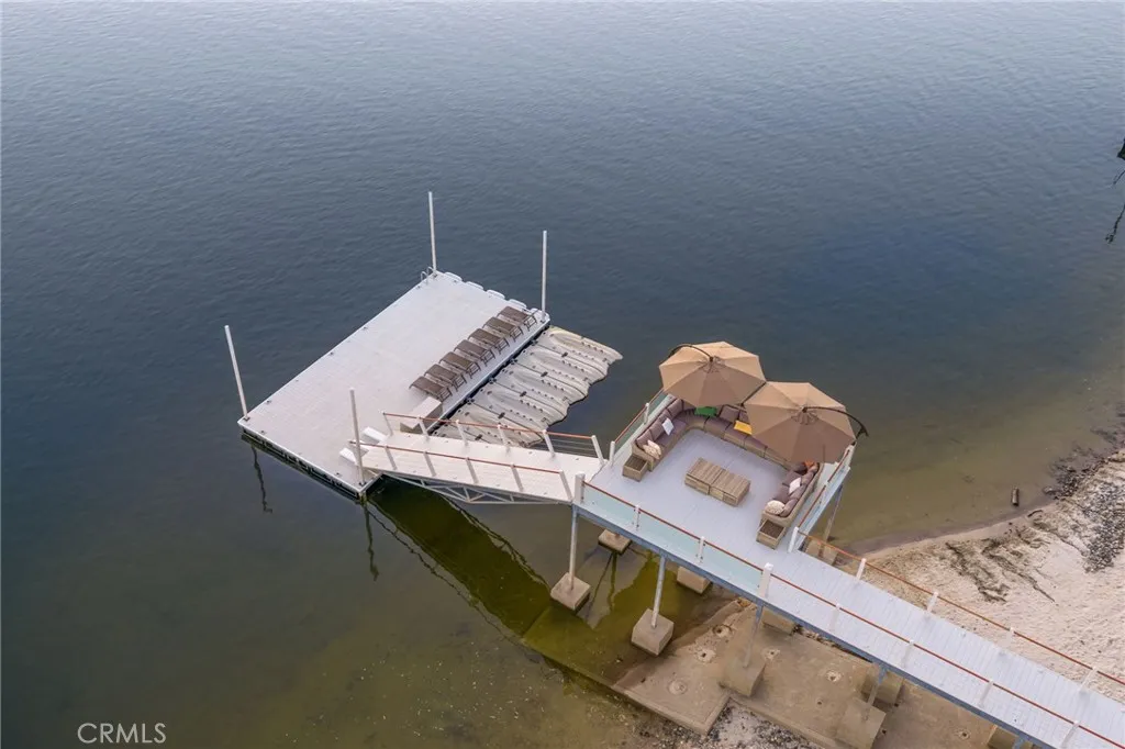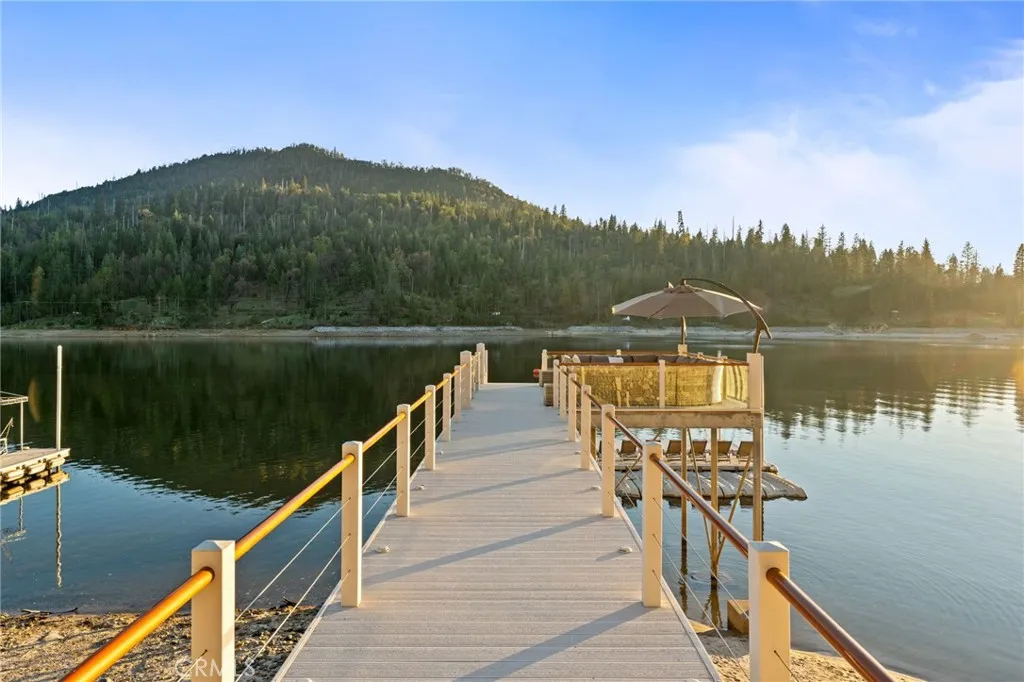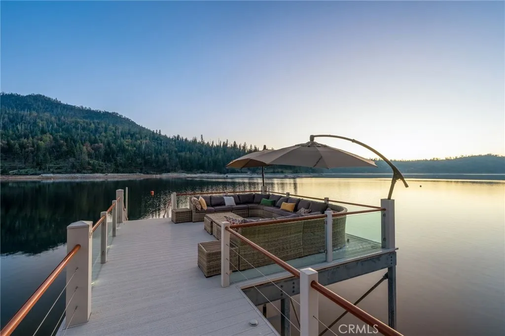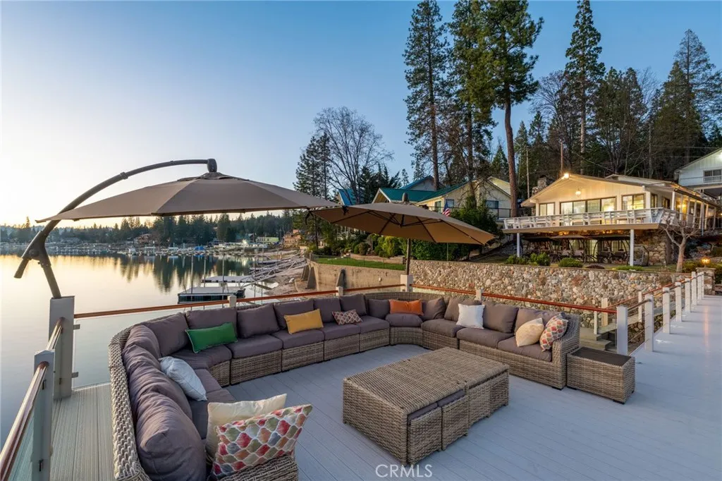 Experience Bass Lake living with this exceptional legacy estate, a rare waterfront offering that combines two homes on a gated parcel, a massive and newer private dock, and is located just a short distance to The Pines. Tucked away at the end of the road, for unmatched privacy, this property represents a generational opportunity on one of the most coveted stretches of the shoreline. Bass Lake, known for its glassy morning waters and proximity to Yosemite National Park, it is a destination where family traditions take root and summer memories are made. The main residence serves as the sophisticated heart of the compound, featuring four bedrooms and two bathrooms. The interior design is defined by a seamless blend of comfort and elegance, highlighted by granite countertops in the kitchen and matching granite surrounds on the wood-burning fireplaces in both the family room and the primary suite. Expansive windows throughout the home act as natural frames for the breathtaking views of the water and the emerald-green hillsides. This home is designed to pull the beauty of the outdoors inside, ensuring the lake is a constant presence in your daily life. Outdoor living is elevated to an art form here, centered around a massive wraparound deck that functions as a premier open-air lounge. The fully equipped outdoor kitchen is a chef’s dream, featuring a built-in BBQ, cooktop, grill, granite counters and sheltered by a custom pergola with integrated heating and lighting and custom built-in seating. From this vantage point, you can look down upon your private dock, which offers a rare level of utility with multiple boat tie-ups and dedicated space for up to six jet skis, along with a massive sunbathing deck. Whether you are hosting a large summer gathering or watching the annual fireworks display directly from your own dock or patio, the setting is truly coveted. The second residence provides incredible flexibility, offering two bedrooms, a full bathroom, and a sprawling game room with its own half-bath. This additional structure ensures that even with a full house, everyone has space to retreat and relax. Supporting the lifestyle is a substantial detached garage, currently reimagined as a high-end home gym and a separate storage area specifically designed for lake toys and equipment. This one-of-a-kind retreat offers the privacy of a gated end-of-the-road location and the versatility of a true family compound, making it the premier waterfront legacy on the lake.