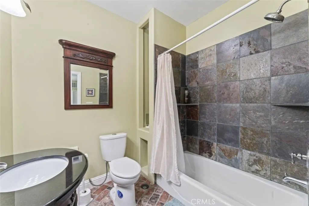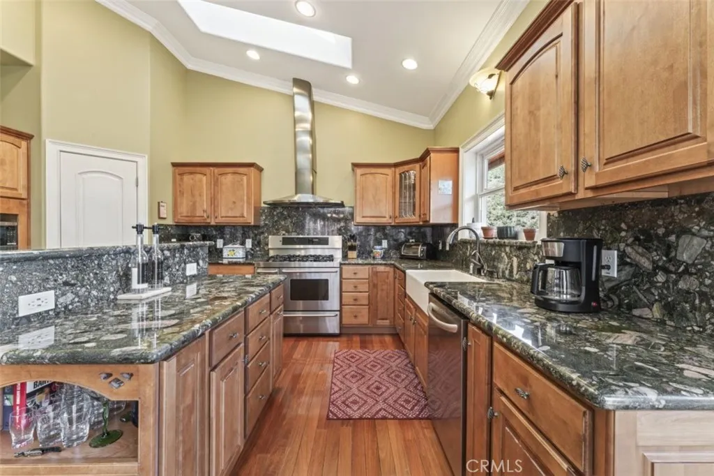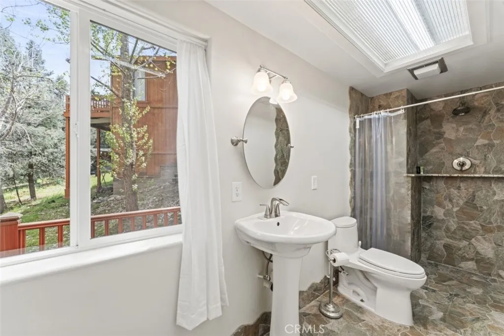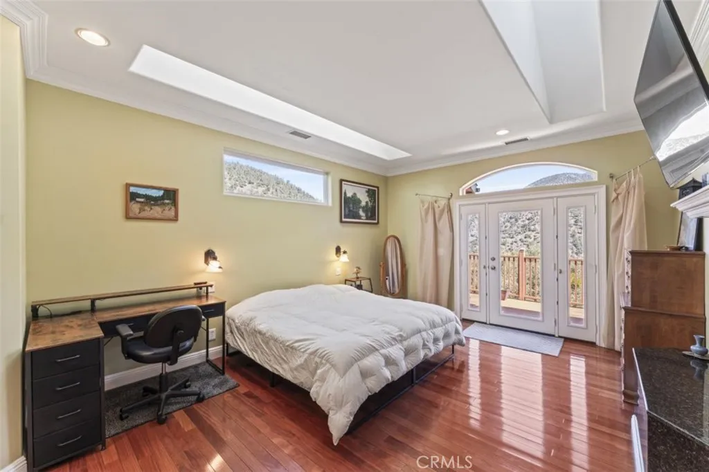 This beautiful multi-level home features four bedrooms, five bathrooms, and a flexible layout with three separate levels, each with its own private entrance. With scenic views of the Los Padres National Forest, this property provides both privacy and versatility. The main level features recessed lighting, gorgeous mahogany floors, vaulted ceilings, and a built-in bookcase, all centered around a wood-burning fireplace and a large picture window overlooking the front yard with a blossoming plum tree. This level includes two bedrooms, including the main bedroom, which serves as a private retreat with a fireplace, walk-in closet, en-suite bath with a spa tub and bidet, and access to its own deck with expansive views of the mountains. The open floor plan kitchen is appointed with granite counter tops, maple cabinetry, stainless steel appliances, a walk-in pantry, an oversized dual-fuel range, and an island breakfast bar. The second level features hand-milled wood flooring, newer carpeting, a bedroom, a spacious family room with plumbing and a gas line in place for a potential kitchenette or wet bar, a large storage area, and an additional room currently used as a home gym. The entry way and both bathrooms on this level are decorated handsomely with imported tile. This floor also features a wine cellar. The lower third level has a separate entrance, kitchenette setup, an additional bedroom and a full bathroom, making it well suited for an ADU or income-producing space. The home includes two garages, a one-car garage and a separate two-car garage, providing ample parking and storage. Additional improvements include wiring for in-home audio on the top floor, high-speed internet wiring throughout, an elevator shaft with a custom three-level spiral staircase, and 220V wiring for a future hot tub. Each outdoor deck level has been piped for propane, allowing for easy installation of propane BBQs. Recent updates include newer carpet in the family room, a top floor furnace with major components replaced in 2025, a water softener installed in 2025, and an updated bonus storage room. Laundry is located on both the first and second levels. Outdoor spaces include a fire-mitigating sprinkler system and multiple areas to enjoy the surrounding mountain and forest views. Located in beautiful Pine Mountain Club, the community features a golf course, tennis courts, swimming pool, clubhouse, and security. The quaint village offers cafes, shopping, and seasonal festivals.