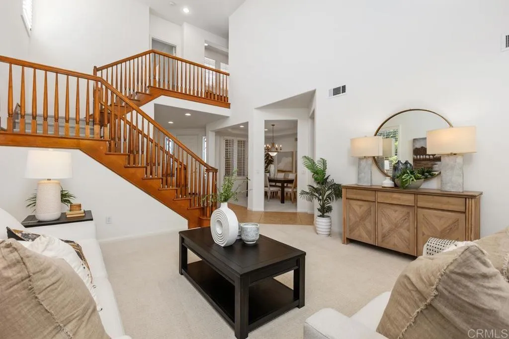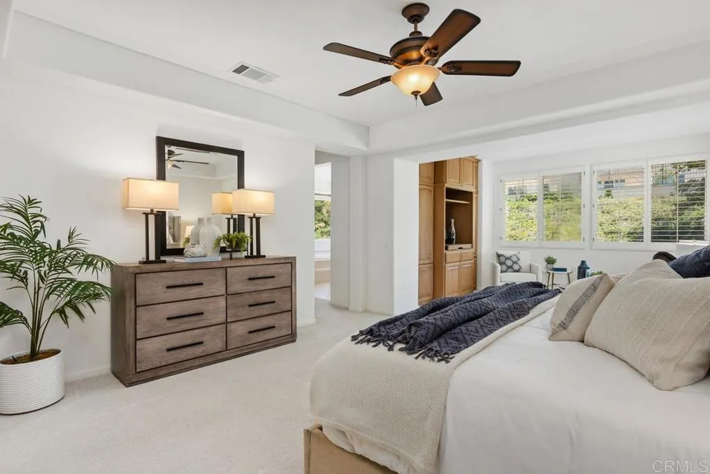 Welcome to this spacious two-story home located in the highly desirable Encantada Community of Aviara! Property offers 5 bedrooms, 4 bathrooms, a 3-car tandem garage, and a very low HOA! This expansive residence combines comfort, functionality, endless potential, ample storage, and excellent curb appeal. Step inside to vaulted ceilings and abundant windows that fill the home with natural light, enhanced by plantation shutters throughout the main living areas. The thoughtfully designed floor plan offers the perfect space for everyday living and entertaining. The main level features a full bedroom and bathroom, ideal for guests or multigenerational living. The open-concept kitchen seamlessly connects to the family room, complete with a cozy fireplace and built-in cabinetry. Large sliding doors lead to the backyard, which features a BBQ area, patio space, and low-maintenance landscaping. Upstairs, a versatile built-in workstation area provides a convenient space for work or study. The second bedroom includes an en-suite bathroom, while two additional generously sized bedrooms share a Jack-and-Jill bath. The oversized primary suite is a true retreat, featuring a spacious sitting area with built-in cabinetry, a large walk-in closet, and an expansive bathroom with dual vanities, a soaking tub, and a walk-in shower. This home is ready for your personal touches to make it your dream home! Ideally located near shopping, dining, top-rated schools, and with easy freeway access. Come see this house today!