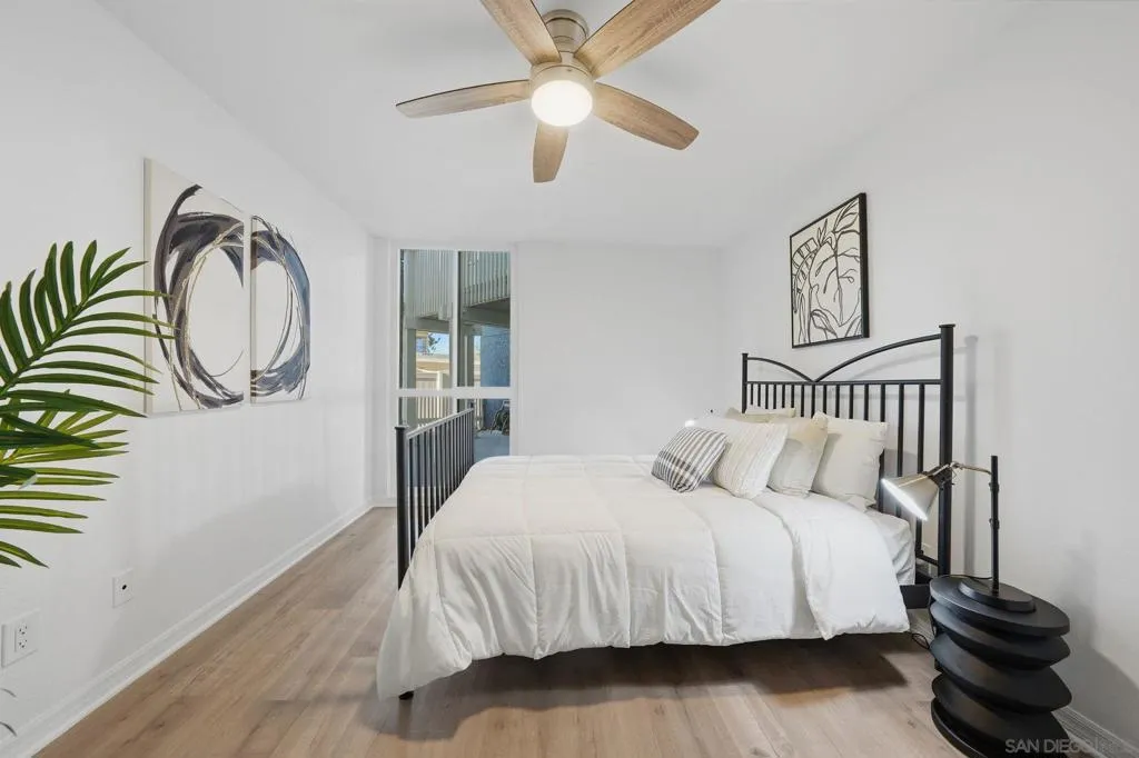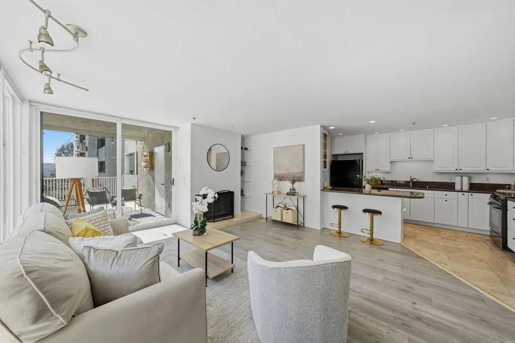 Coastal living in prime Pacific Beach location! This beautifully updated condo is a stone’s throw from the tranquil shores of Sail Bay and the charm of Fanuel Park, with 2-bedrooms, 2-baths with in-unit laundry and 2 parking spaces inviting you into one of San Diego’s most coveted coastal lifestyles. Imagine morning strolls along the water, paddleboarding at sunset, and endless days where the beach is quite literally seconds from your front door! Bathed in natural light from stunning newer floor-to-ceiling windows, this spacious 1,200+ sq ft home offers an open-concept layout designed for both comfort and connection. The living space flows effortlessly to a private patio perfect for soaking in coastal breezes while a cozy fireplace anchors the room with warmth and charm. Newer luxury vinyl plank flooring adds a modern, beach-inspired touch. Located within the gated, pet-friendly Gresham La Palma community thoughtfully tucked away to create a quiet retreat from the vibrant energy of Pacific Beach. Residents enjoy resort-style amenities including a pool, spa, expansive patio areas, and convenient bike storage ideal for embracing the active coastal lifestyle. Elevator access, EV charging, and two secure tandem parking spaces in the underground garage provide ease and practicality in a location where parking is a true luxury. Set just moments from the bay, beach, and PB boardwalk, you’ll have effortless access to some of San Diego’s best dining, shopping, and local hotspots all while enjoying your own serene space. This is more than a home, it’s a lifestyle!