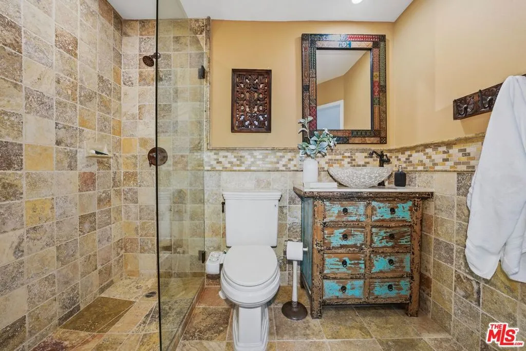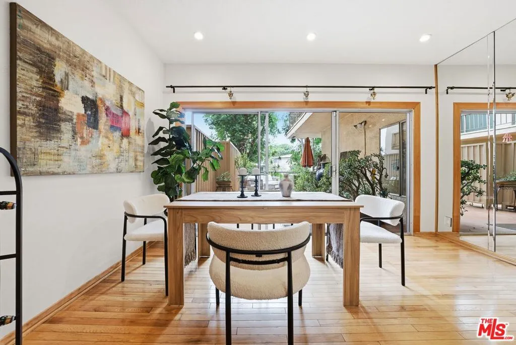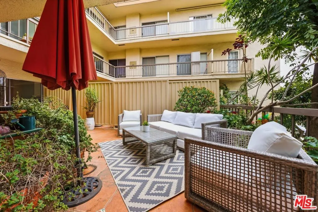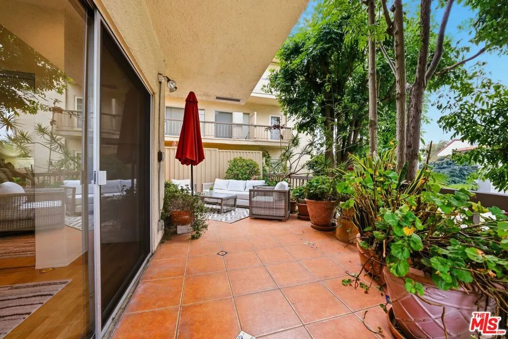 Completely renovated with a keen eye for design and detail, this stunning residence offers a perfect blend of modern sophistication and warm, inviting character, further enhanced by a full wrap-around patio featuring a tranquil water feature that creates a seamless indoor-outdoor living experience. The kitchen and entertaining space serve as the heart of the home, thoughtfully reimagined to balance style and functionality. At its center, a gracefully curved breakfast bar, topped with richly veined stone, creates a striking focal point and an inviting place to gather, whether for casual mornings or lively evenings. The open layout allows for a seamless flow into the living area. The galley-style kitchen is both functional and beautifully appointed, featuring custom wood cabinetry with glass-front uppers that showcase curated pieces and add depth and charm. Above, a statement chandelier set within a richly accented, coffered ceiling introduces a layer of sophistication and architectural interest rarely found in condo living. Outfitted with sleek stainless steel appliances, a contemporary vent hood, and an integrated cooktop, the kitchen is designed for both performance and style. Textured tile backsplashes and warm-toned countertops create a cohesive, layered aesthetic, while a statement sink paired with a bold, sculptural faucet adds a distinctive designer touch. Thoughtful finishes, including built-in display shelving, decorative hardware, and a dedicated wine rack, enhance both form and function. Anchored by warm wood flooring, the space feels polished yet inviting, ideal for both everyday living and elevated entertaining. On the same floor, residents have access to two laundry rooms, with one conveniently located directly across the hall from the unit. Residents enjoy a full suite of amenities, including a pool, spa, newly renovated gym, and a sauna. HOA dues include earthquake insurance, and an on-site maintenance team and superintendent are available five days a week. Ideally located near Brentwood's premier shops, dining, and cafs, this beautifully renovated home offers an exceptional blend of comfort, style, and convenience in one of the Westside's most sought-after neighborhoods.
