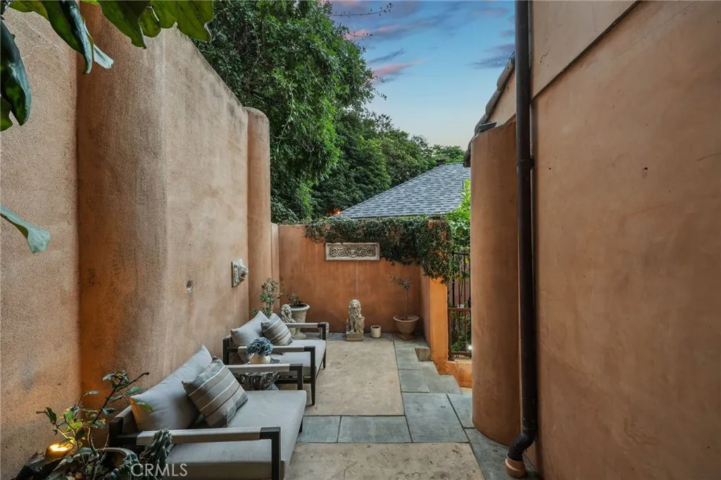 Beautiful Tuscan Villa, on a tree lined culd-de-sac walking distance to Ventura Blvd. Excellent central location near the Hollywood Bowl, all the great Hollywood restaurants, entertainment venues and the restaurants on Ventura Blvd. Large chef remodeled kitchen with plenty of storage connect to ample dining room with mountain views. Living Room is elegant with wood floors and cozy decorative fireplace. Also at this level there is a flex room that can be used as a bedroom or office with walk in closet and a full bath next to it. Next level has all large bedrooms with private bathrooms and large closets. Backyard is low maintenance with room for family dinners and entertainment with plenty of privacy. Location is amazing with quick access to the 101 to connect to LA or the Valley.