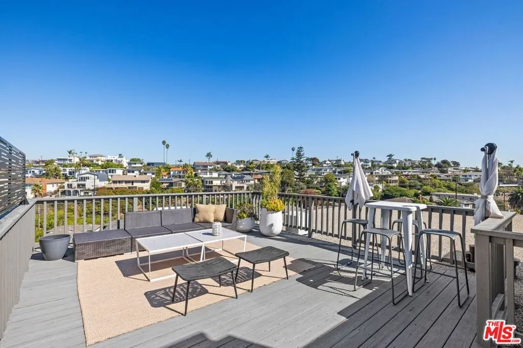 We are excited to present a fully-renovated Mid-Century beauty, an expansive near-ocean retreat that features a stunning rooftop deck, two spacious balconies, and two inviting wood/gas burning fireplaces. Revel in the luxury of a private driveway while enjoying the convenience of being just a short drive from the vibrant city. Experience the essence of coastal living, where you can stay connected without the hustle and bustle, all within the serene Playa del Rey neighborhood with refreshing ocean breezes. As you enter through the custom mahogany and rain glass doors, you will be welcomed by an expansive main floor adorned with wall-to-wall windows that provide breathtaking views. The middle floor harmoniously blends living, dining, and family spaces, anchored by a spectacular entertainer's kitchen outfitted with top-of-the-line Sub-Zero and Wolf appliances, complemented by imported Italian cabinetry featuring powered doors and innovative space-saving solutions. The charming family room includes a functional fireplace, currently enhanced with a gas-fired glass pebble bed for immediate ambiance. Adjacent to this area, a generously sized pantry/laundry room connects to a spacious three-and-a-half car garage. Venture to the upper level, where versatility shines with a bedroom that includes its own bath, fireplace, and access to the rooftop deck, along with a large additional room perfect for a family room, office, or mother-in-law suite. The rooftop deck offers an idyllic setting to soak up the California sun while enjoying panoramic views of the city and marina. On the lower level, discover the primary master suite, featuring a luxurious spa-inspired bathtub, separate shower, and an oversized walk-in closet. Two additional bedrooms share a beautifully updated full bathroom, while ample hallway storage ensures a clutter-free atmosphere. Beneath the home, a substantial storage basement provides a clean and dry space for all your needs. This extraordinary home, nestled on the rare west side of Pershing in Playa Del Rey, is move-in ready, elegantly designed, and waiting for its new owner - YOU! Don't miss the opportunity to make this dream home yours!