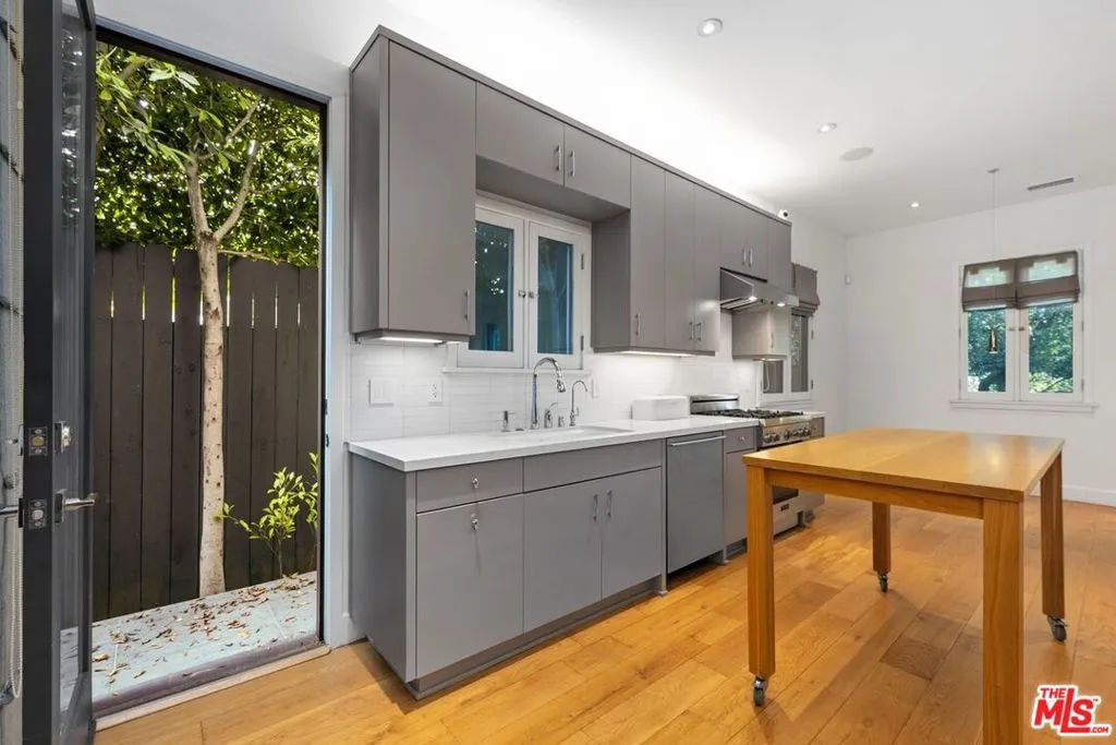 Set just two blocks from the charm and vibrancy of Larchmont Village, this exquisitely re-imagined single-level contemporary residence offers a seamless blend of architectural character and modern sophistication.A gated entry and custom driveway create a striking first impression, leading into a dramatic foyer and expansive, light-filled interiors defined by soaring ~10-foot ceilings and a refined, open-concept design. The living spaces unfold with effortless flow, evoking a loft-like ambiance ideal for both elevated entertaining and everyday living.The gourmet kitchen is thoughtfully appointed with an inviting breakfast area and direct access to the outdoors, enhancing the home's indoor-outdoor lifestyle. The residence features 3 bedrooms and 2.5 baths, with oversized 8-foot interior and exterior doors that amplify scale, light, and elegance throughout.Outdoors, a private, fully gated grassy yard offers a serene retreat framed for both relaxation and entertaining. Modern enhancements include a comprehensive smart home system (interior and exterior, including irrigation), integrated security cameras, reverse osmosis water filtration, and a soft water system.Ideally positioned just south of Hollywood and moments from Larchmont Boulevard, Melrose Hill, Wilshire Country Club, and Los Angeles Tennis Club, this exceptional offering captures the essence of refined Los Angeles living.