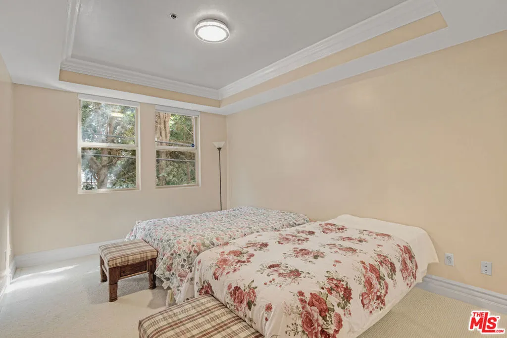 This stunning residence has been beautifully redone and is conveniently located just moments from Melrose Place. The spacious floor plan includes a formal living room, dining area, large den with fireplace, and a gourmet kitchen with an expansive island and breakfast bar, making it perfect for both everyday living and entertaining. The unit features two spacious bedroom suites situated on opposite sides of the residence for ideal privacy, both with dramatic ceilings. The luxurious primary suite includes a large walk-in closet and a spacious bathroom with dual vanities, soaking tub, and separate shower. An open-air patio provides the perfect space for alfresco dining or relaxing with friends. Additional features include in-unit laundry, two parking spaces, extra storage, and guest parking in a secure building. Light, bright, and ideally located in one of the most coveted buildings near Melrose Place, just moments from renowned restaurants, shops, Cedars-Sinai, The Grove, and Beverly Center. Available furnished or unfurnished