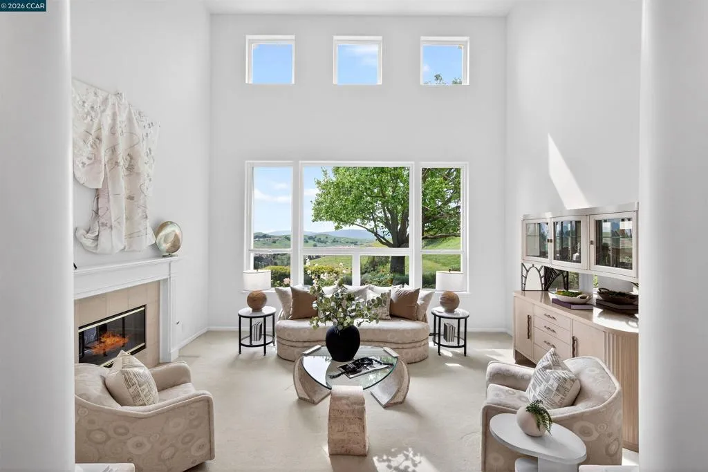Awe-inspiring panoramic open space, hillside, golf course views. Lush gardens. Spacious, light-filled 2-level flrpln w/in gates of Blackhawk Country Club. Cul-de-sac. Ultra-private .32 acres near Falls Clubhouse. 3728+/-SF. Soaring ceilings, updated carpet, tiled flrs. 5 bds, 4 bths inclds main-level primary suite, guest rm/office w/pvt entry. Formal living rm w/2-story view wndws, frpl. Formal dining rm. Updated chef’s eat-in kitchen. Granite slab counters, brkfst bar, bksplsh. Newly painted cabinetry, upper glass-faced. GE Monogram appls. 5-burner cooktp, frig, dishwasher, dual ovens. Family rm w/frpl, built-ins. Bonus rm ideal for game/media rm/5th bed. Primary ste w/gas frpl, sitting rm area. French dr to hot tub, gardens. Walk-in & reach-in closets. En suite w/dual-sink vanity, jetted tub, oversized shwr. 2 upstairs bdrms share Jack & Jill bthrm w/dual-sink vanity, tub/shwr combo. Bkyd sanctuary. Lush gardens, patio, pergola, hot tub, lawn, mature trees, terraced gardens. 2 & 1-car garages. Epoxy flr. Storage/wkbench. Dual HVAC. Dual wtr htrs. Laundry rm w/sink, cabinets. Sec. alarm. Near golf, tennis/pickleball cts, clubhouses, fitness ctr, sports complex, Blackhawk Plaza, downtown, farmers markets, freeways, top-rated SRVUSD schls, Mt. Diablo, parks, Livermore Wine Ctry.