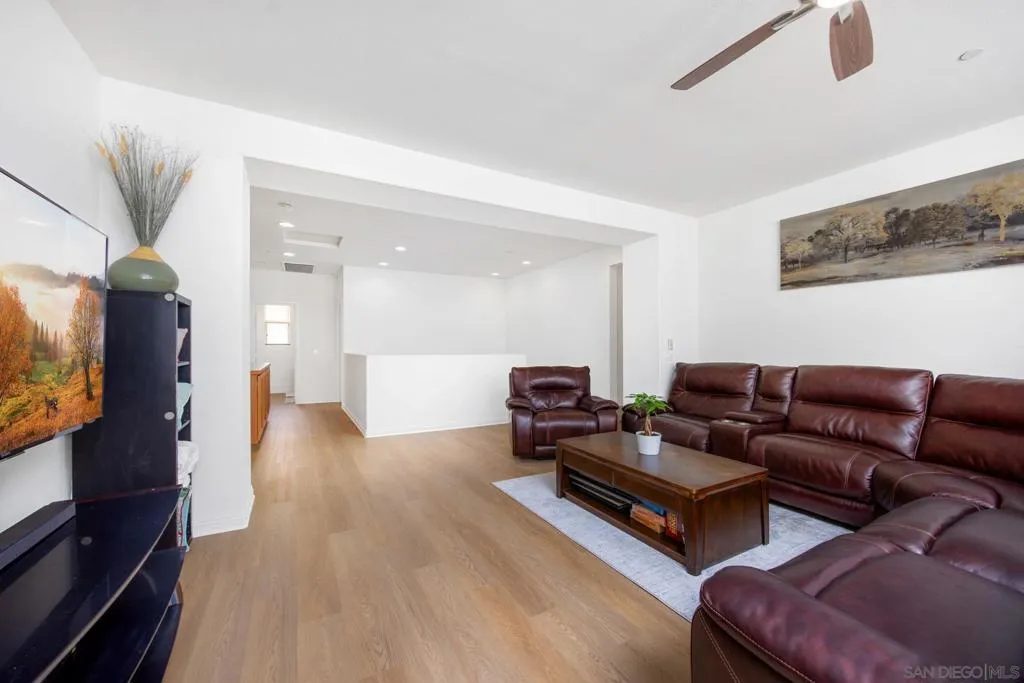 Offered for the first time, this exceptional Montecito residence reflects true pride of ownership and features OWNED SOLAR, a thoughtfully designed floor plan spanning 3,344 sq ft with a 3-car tandem garage. The home offers generous living spaces and flexible options to suit today’s modern lifestyle. The main-level bedroom with a private en-suite bath is ideal for guests, multigenerational living, or a private home office. The main floor is enhanced with luxury vinyl plank flooring and tile, creating a clean, cohesive look that complements the open-concept living and dining areas. The space flows effortlessly into the chef-inspired kitchen, highlighted by an oversized island perfect for entertaining and everyday gatherings. Recent upgrades include refreshed front and backyard landscaping, a new laundry room sink, and an updated upstairs bathroom sliding glass door. A covered California Room-style patio extends the living space outdoors, creating a true indoor–outdoor lifestyle ideal for relaxing or hosting guests. The low-maintenance backyard is designed for easy care while still offering ample space for entertaining. Upstairs, a large loft provides additional flexibility—perfect for a media room, game space, or home office. Conveniently located within walking distance to top-rated schools, parks, and community pools, this home delivers comfort, functionality, and effortless indoor–outdoor living in one of Montecito’s most desirable communities.