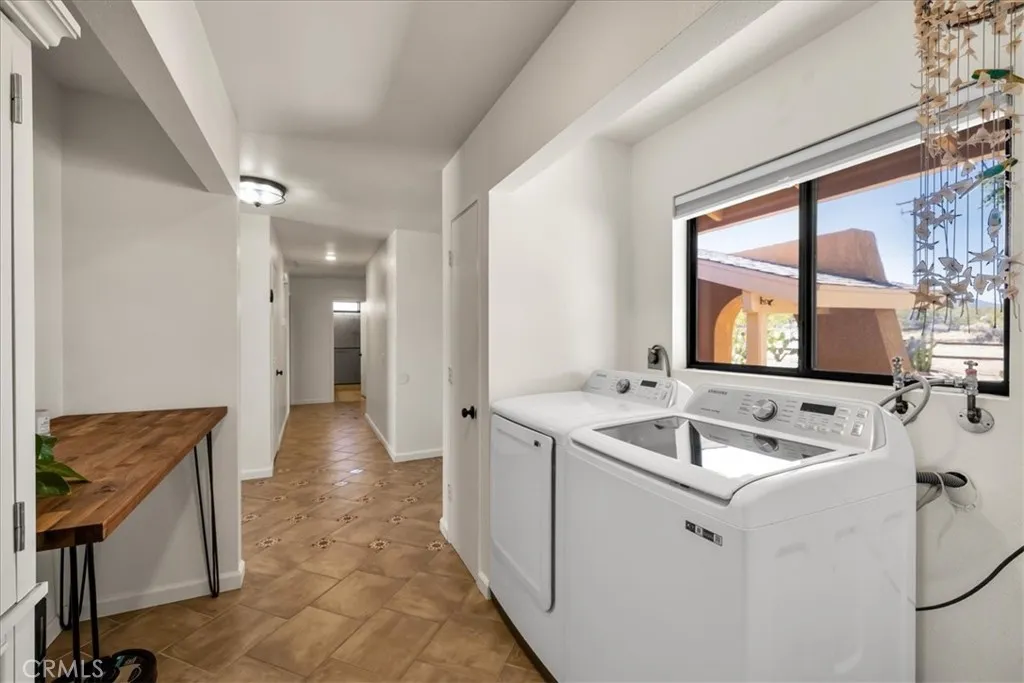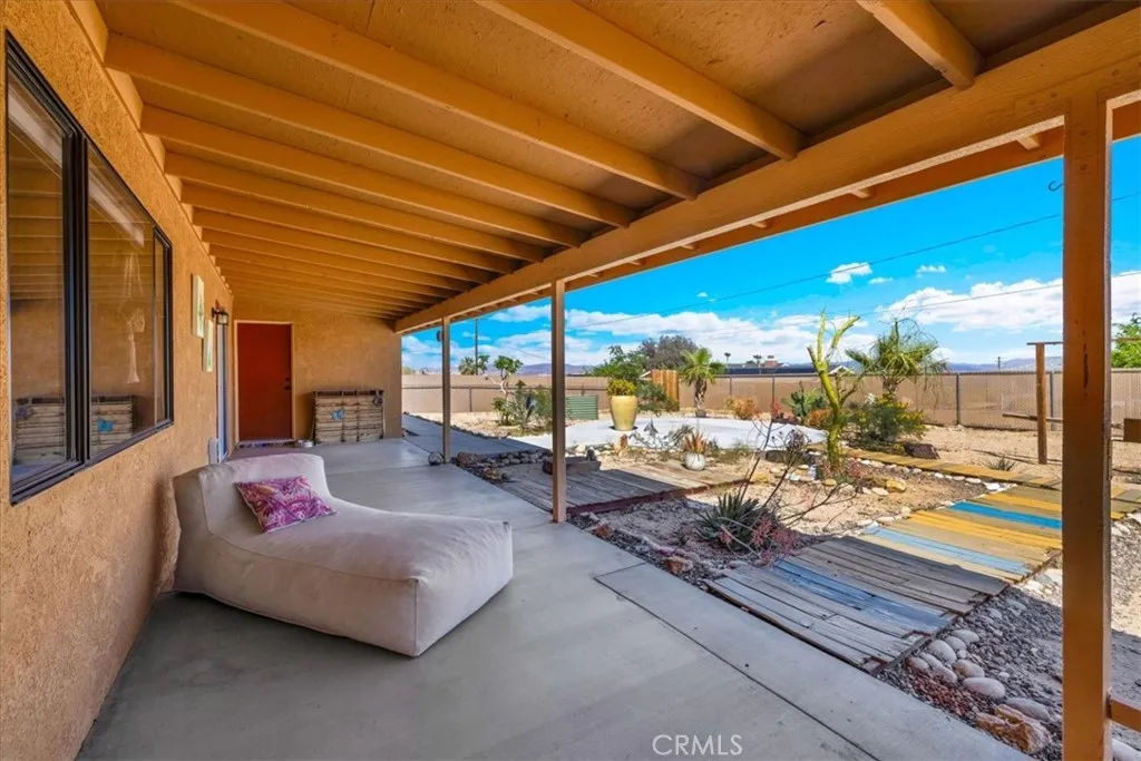 Welcome to this beautifully maintained 3-bedroom, 2-bath home located in the desirable Sherman Heights area of 29 Palms, offering 1,510 square feet of comfortable, well-designed living on a generous 13,000 sq ft lot. From the moment you arrive, the pride of ownership is clear with beautifully maintained landscaping in both the front and backyard. Inside, the home features a fully renovated kitchen complemented by both a formal dining area and a cozy breakfast nook—perfect for everyday living or entertaining. The spacious living room is anchored by a charming wood-burning stove, creating a warm and inviting atmosphere. All three bedrooms are generously sized, offering flexibility for guests, a home office, or growing households. Convenient indoor laundry adds to the home’s functionality. Step outside to a privately fenced backyard designed for relaxation, complete with lush landscaping and a shaded back porch—an ideal space to unwind or host gatherings. This all-electric home also features central heating and air conditioning, a well-maintained roof, and undeniable character throughout, combining comfort, charm, and location into one exceptional opportunity.