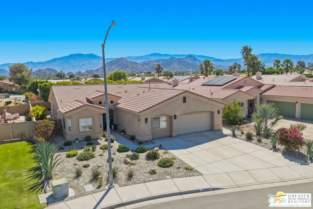 Welcome to this charming and well-maintained home! It is situated at the end of an extremely quiet cul-de-sac in Sedona Estates, one of Bermuda Dunes' most desirable communities. This residence offers style, comfort and value in our desert oasis. Walking up to the entry you will discover well maintained Desertscaping. As you enter the front door you will observe an abundance of natural light. The home offers a warm, open floor plan designed for both everyday living and entertaining. The kitchen features newer S/S appliances and elegant updated cabinet hardware. An enjoyable breakfast nook with lots of natural light is an easy flow into the main living areas. The spacious layout with high ceilings, windows and a slider create natural daylight. The extra sitting room with a window offers day light for added flexibility. The primary suite is generously sized to unwind with a Roman tub for soaking. The suite offers a walk-in closet, new tiles, a private water closet with its own additional sink. The second spacious bedroom enjoys a full ensuite bathroom, ideal for extended family, teenagers, guests, multigenerational living. The third bedroom is currently being used as an office. The oversized garage was built as a three-car with a window in lieu of a door. A conversion is easily accomplished! The south facing extra-large concrete patio with Alumawood cover, lights, ceiling fan is great for outdoor living year round. The backyard offers a natural desert landscape, immaculately trimmed Ficus trees lining the perimeter, creating a polished and private setting. Looking for a pool? There is ample space to design your dream backyard aquascape. Come experience the warmth, comfort, and charm of this beautifully maintained home and imagine making it your own. This home has over 2,100 sq.ft. of living space with three-year-old S/S appliances, along with new LED ceiling lights, concrete walkways, extended concrete for a three car garage, cabinet hardware throughout, tiles, beveled glass front door, sliders, blinds, drapes, fans, light fixtures, faucets, doorknobs. HOA dues $28/mo., IID electric service for lower costs, within one mile of Bermuda Dunes CC, close to Indian Wells Tennis, Polo Fields, PGA West, shopping, Restaurants.