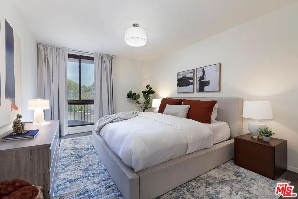 Set just off Sunset Boulevard, this two bed two bath residence at 1351 N Crescent Heights Blvd offers a sophisticated blend of comfort, scale, and location in the heart of West Hollywood. This light-filled home features an airy open-plan layout with seamless living and dining spaces, a welcoming fireplace, custom built-in display shelving, and sliding glass doors that open to a covered front-facing balcony. The primary suite enjoys its own balcony access, while the second bedroom is framed by tranquil greenery. Residents are welcomed by an elegant lobby and enjoy access to a resort-style pool, sun-drenched courtyard lounge, fitness center, and gated tandem parking with storage. Moments from the Sunset Strip, Chateau Marmont, Trader Joe's, Whole Foods, and some of the best dining and nightlife in the city, this is an exceptional opportunity to live in one of West Hollywood's most vibrant enclaves.