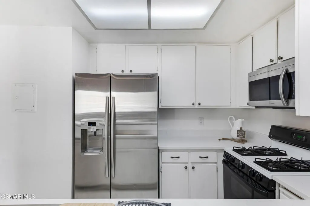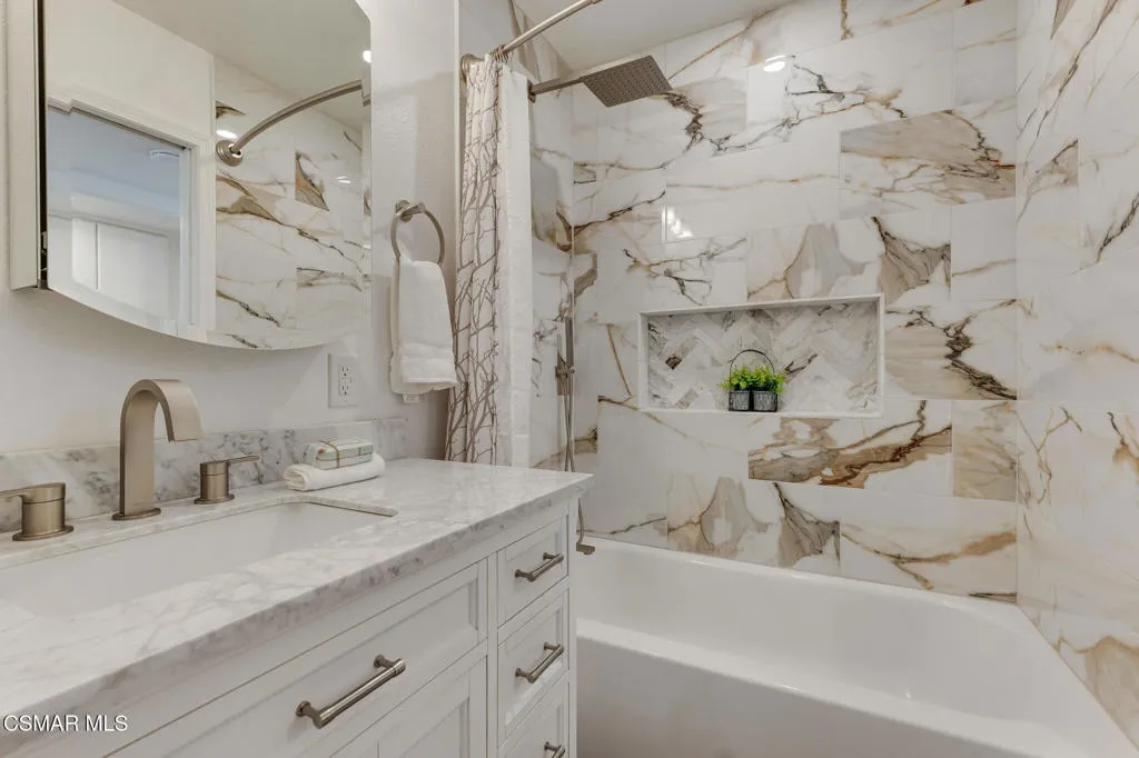 Welcome to this beautifully upgraded upstairs condo in the desirable Parkview community. This inviting 2 bedroom, 2 bath residence offers a light, airy ambiance with thoughtful enhancements throughout.The spacious kitchen is tastefully updated with quartz countertops, bright cabinetry, and new appliances, including a refrigerator. A convenient breakfast bar adds both functionality and style, making it ideal for everyday living and entertaining.The primary suite is generously sized, offering comfort and privacy, while both bathrooms have been upgraded with elegant finishes, including marble inspired tile and modern floating shelving.Additional highlights include in unit laundry, a private balcony perfect for relaxing, a tankless water heater, fresh interior paint, and ethernet connectivity in one bedroom. The home also includes a one car garage plus an assigned parking space.Ideally located close to shopping, dining, and everyday conveniences, this community also features a sparkling pool, perfect for enjoying warm California days.