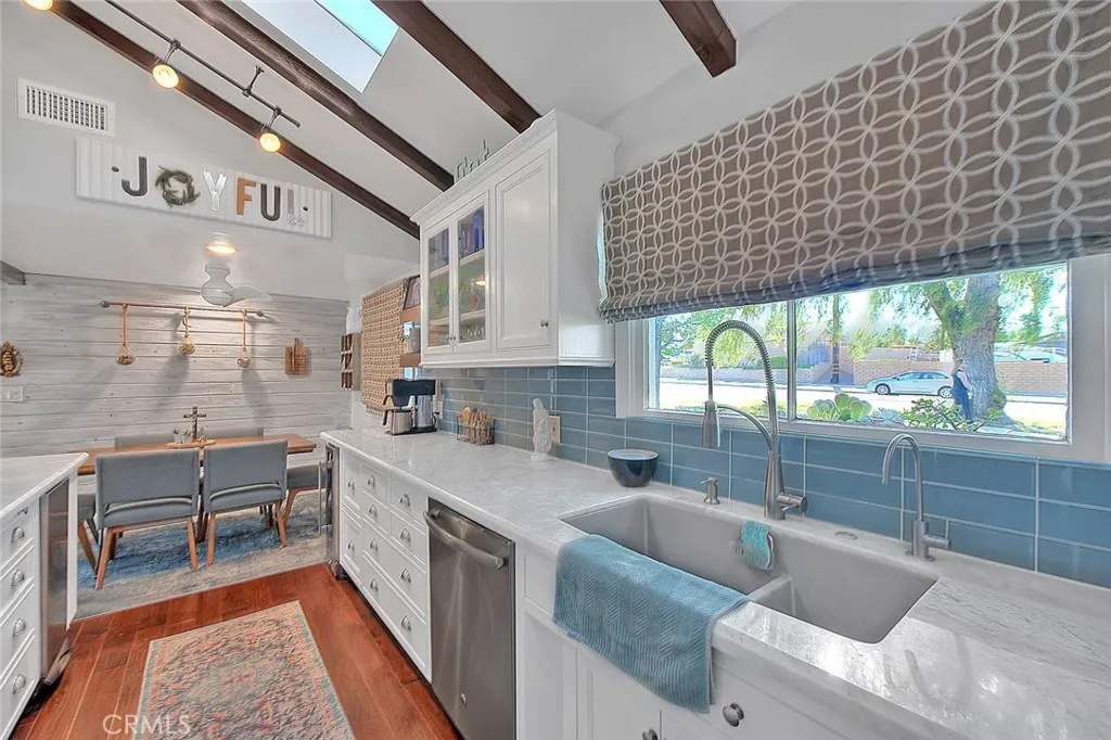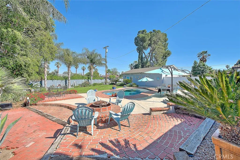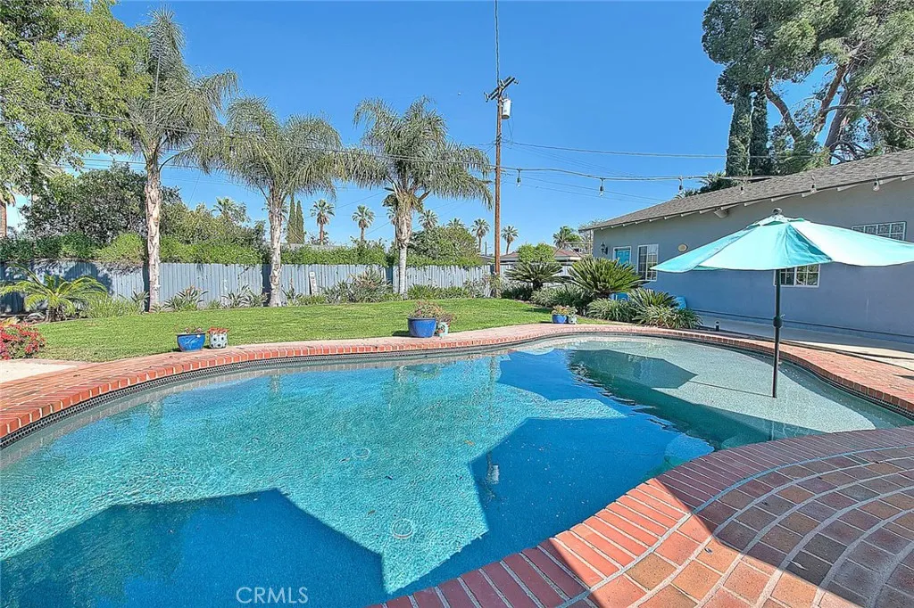 FABULOUS & WONDERFULLY upgraded SINGLE story home located on a sprawling 15,246 sq ft lot. (per tax roll) The amenities of this highly desirable property are many! There are 4 bedrooms including the primary & 3 bathrooms. Exterior features include RV parking, oversized garage w/pull through door, a very private backyard that is ideal for entertaining with inground pool, raised deck for outdoor dining, an expansive lawn area, mature trees, above ground spa, firepit & more! Interior has been remodeled throughout including a GORGEOUS kitchen done in light & bright white cabinetry with a skylight that brings in soft natural light, Carrera marble counters & dramatic blue glass subway tile backsplash. Stainless appliances including trash compactor, wine frig, oven, microwave, dishwasher & 5 burner cook top w/overhead hood. Built-in subzero refrigerator matches the cabinetry. Overhead beam accents add a designer touch to the kitchen. All bathrooms have been upgraded & the guest bathroom is done in a contemporary design showcasing a large walk-in shower, dramatic tile accent wall & contemporary light fixture that further enhances the décor. The smaller guest bathroom also features a beautiful tile design in the shower. There is a formal dining room as well as a generous space for casual informal dining right off the kitchen adjacent to the living room that could be used for a pool table or multi-purpose area. This space has built-in seating by the windows. There is also a breakfast nook with attractive accent wall design & overhead ceiling fan. 3 indoor areas to dine! An inviting fireplace with raised hearth, beautiful tile detailing & a custom mantel adorns the living room, a spacious and relaxed room to gather in. Tranquil primary suite is sizeable with faux beam ceiling accents, spacious walk-in closet & tastefully upgraded bathroom including double vanity with quartz counters, tile floor & beautiful walk-in shower w/gorgeous tile detailing. There is a separate soaking tub as well. This home features upgraded engineered wood plank flooring through almost the entire interior w/exception of bathrooms & one bedroom & den. One guest bedroom has an adjoining room currently used as a den. Other notables: Stained glass windows in many rooms, updated lighting fixtures, 2 AC units, crown molding, multiple decorative accent walls, reverse osmosis water system in the kitchen, barn door, convenient indoor laundry niche, an abundance of storage built-ins & more! A MUST see!