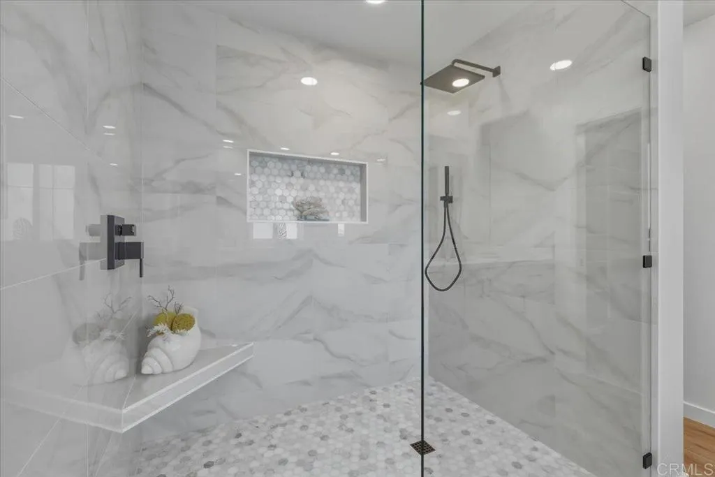 Rare opportunity to own an exceptional property located West of I-5 in the wonderful coastal community of Solana Beach. Situated high up on nearly 1/2 acre, this ranch-style property offers remarkable space & privacy. Thoughtfully updated throughout, this fully renovated 4 bed, 4 bath, 3702 sq ft home features NEW flooring. NEW Milgard windows & front door. NEW paint inside & out. As you enter, you’ll immediately appreciate the open panoramic views, a welcoming and spacious living room, a charming Sunroom with its own deck, and the fully renovated galley-style kitchen with all NEW appliances. The impressive Primary Suite has a gorgeous NEW bath and an expansive 300 sq ft deck. As you head downstairs, you’ll find 3 large rooms providing true Flex space…whether it’s a home office, family den, game room, home gym, or an additional bedroom...you decide based on what works for YOUR lifestyle and needs! Plus, there is 650+ sq ft of unfinished attached space (not part of the sq. ft total), with a private entrance. Built out, this would be an ideal Junior ADU (requires city approval). The house also has NEW heaters, an oversized double garage, a carport, and 2 driveways! The large, very private, expansive backyard features peaceful amphitheater views to the South, an updated Sports 'Pickleball' Court, a fire pit for evening gatherings, mature landscaping, and ample gardening space. The generously sized lot has plenty of room for a potential detached ADU (buyer to verify with the city) or other resort amenities like a pool, spa or even an expansive artificial turf golf area! An idyllic, quiet neighborhood, conveniently located near top-rated schools, the Cedros district, dining & shopping along the Coast Highway, the Coaster train and Fletcher cove, one of the best beaches in North County. Don’t miss this opportunity.