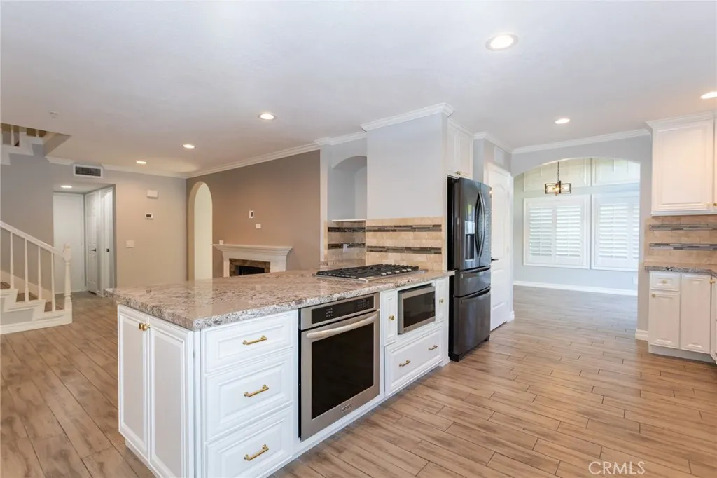 Welcome to this stunning fully remodeled 5-bedroom, 2.5-bathroom residence in the prestigious Marblehead gated community of San Clemente. This turnkey home features approximately 2,400 square feet of thoughtfully designed living space with premium finishes throughout. The interior showcases beautiful wide-plank luxury vinyl flooring, crisp white shaker cabinetry with brushed gold hardware, granite countertops, and plantation shutters. The formal living room impresses with a dramatic stacked-stone fireplace and crown molding, while the gourmet kitchen offers a center island with built-in gas cooktop, stainless steel appliances, and stylish subway tile backsplash. The spacious primary suite includes vaulted ceilings, a walk-in closet with custom built-in shelving, and a spa-inspired en-suite bathroom with double vanity, soaking tub, and shower. Four additional bedrooms provide generous space for family, guests, or home offices. The private backyard serves as a personal oasis with a custom stone spa, flagstone decking, mature palm trees, and low-maintenance landscaping. Additional features include a remodeled powder room, dedicated laundry space with washer and dryer, and a 2-car attached garage with epoxy flooring. The home is available April 1st at $7,195 per month with a one-month security deposit on approved credit. HOA fees are paid by the owner. Tenant is responsible for all utilities including spa maintenance and landscaping. Pets will be considered with additional pet rent and deposit.