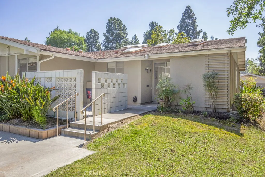 This 2bd/1ba Granada (940 sq. ft.) is located in Laguna Woods Village- the premier 55+ active community in Orange County. The Village is near Laguna Beach and offers many great amenities such as: 27-hole golf course, tennis courts, separate pickle ball courts, five swimming pools, three fitness centers, seven clubhouses including Clubhouse 4 offering amazing classes in art, ceramics, wood shop, jewelry-making, and sewing, and much more. As you enter the home, you will notice that the atrium has been enclosed and there are skylights making the room brighter. This enclosure provides additional square footage (approximately 60 sq. ft.) and is designed for your dining room or an office. The second bedroom has been modified and now serves as a guest room, den or crafts room. The living room is spacious with a vaulted ceiling. There is carpet throughout the home and tile flooring in the kitchen, enclosed atrium & bathroom. The home is an end unit allowing an extra window in the living room. The kitchen has been expanded creating a more desirable space for cooking. There is recessed lighting and window overlooking the front patio. Enjoy additional features such as central AC/Heat, a full size washer/dryer and skylights in the living room/kitchen. Your new home is near Clubhouse 3- the Performing Arts Center. Enjoy the private location and all the Laguna Woods Village amenities.
