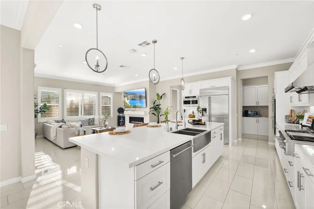 Hidden within the gated hilltop community of Sierra Bella, 2413 Sierra Bella Drive offers a refined blend of luxury, comfort, and functionality. Surrounded by rolling hills and filled with natural light, this home provides a serene setting with the added benefit of private, controlled access. Spanning approximately 3,662 square feet, the residence features 5 bedrooms, 4.5 bathrooms, a formal office, and a versatile loft. Upon entry, soaring two story ceilings and an open layout create a seamless flow between the great room, dining area, and kitchen, ideal for both everyday living and entertaining. The kitchen is bright and clean lined, featuring Monogram appliances, a built in refrigerator, designer pendant lighting, an oversized center island, and Quartz countertops throughout the home. Just off the dining area, the backyard patio showcases a fireplace and automatic motorized blinds, creating a comfortable indoor outdoor living experience. The backyard is designed with low maintenance oversized pavers, offering a modern aesthetic and a blank canvas for future additions such as a pool or expanded outdoor space. The main level includes a private guest suite, dedicated home office, and powder bath. Upstairs, a spacious loft with a balcony provides additional living or flex space. The primary suite captures scenic hill views and flows into a well appointed bathroom with dual vanities, soaking tub, separate shower, private water closet, and a generous walk in closet. Three additional bedrooms and two bathrooms complete the upper level. Additional features include a paid off sixteen panel solar system, Tesla EV charger, water softener and filtration system, tankless water heater, a three car garage, and plantation shutters throughout. Residents of Sierra Bella enjoy panoramic views of city lights, surrounding hills, and snow capped Mount Baldy, along with access to a private community park and a public park just outside the gates. Convenient commuter access via Green River Road places you just one exit from Orange County, Yorba Linda, and Anaheim Hills, with easy connectivity to the 91, 71, and 15 freeways, as well as the 241 Toll Road.