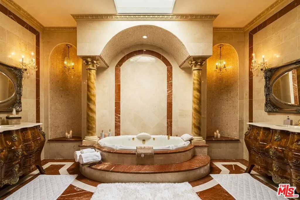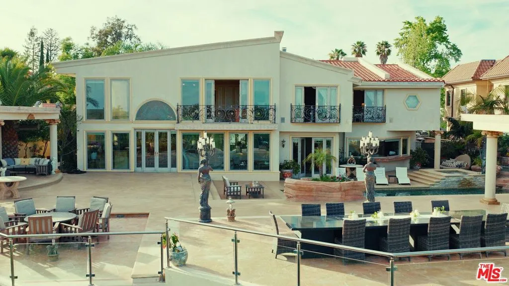 2716 Casiano Drive Private Regency-Inspired Estate with Ocean & City Views. Welcome to 2716 Casiano Drive, a grand Regency-inspired residence offering exceptional privacy, security, and sweeping city and ocean views. Tucked within an exclusive gated enclave, this elegant estate combines timeless European design with the tranquility of a secluded hillside setting. This home offers a variety of ways to enjoy every moment. Whether you're hosting guests for a delightful meal in the gourmet kitchen or soaking up the sun by the pool, there's something for every mood. Spend a romantic evening with a loved one, taking in the sweeping views of the ocean and lush green hills, or host a grand gathering in absolute privacy. A dramatic foyer with soaring 19-foot ceilings opens to a stately entry hall, leading to beautifully appointed living spaces including a Versailles-inspired living room, formal dining room, intimate breakfast area, and a rich walnut-paneled bar. Detailed moldings, high ceilings, and steel-framed windows fill the home with natural light while framing stunning views.Upstairs, the expansive primary suite provides a peaceful retreat with sitting areas, a spacious bedroom, marble bath with a soaking tub, and generous walk-in closets. Four additional ensuite bedrooms, some featuring fireplaces and French doors opening to private balconies, offer comfort and elegance for family or guests. Surrounded by lush landscaping, the secluded backyard creates a resort-like escape with a sparkling pool and spa, cascading waterfall, and covered cabana overlooking city and ocean vistas. The grounds also feature more than 50 fruit trees, enhancing the estate's beauty and privacy.Additional highlights include a private studio with a full bath, extra storage, a direct-entry two-car garage, and secure gated access, offering a rare combination of luxury living, privacy, and peace of mind in Los Angeles.