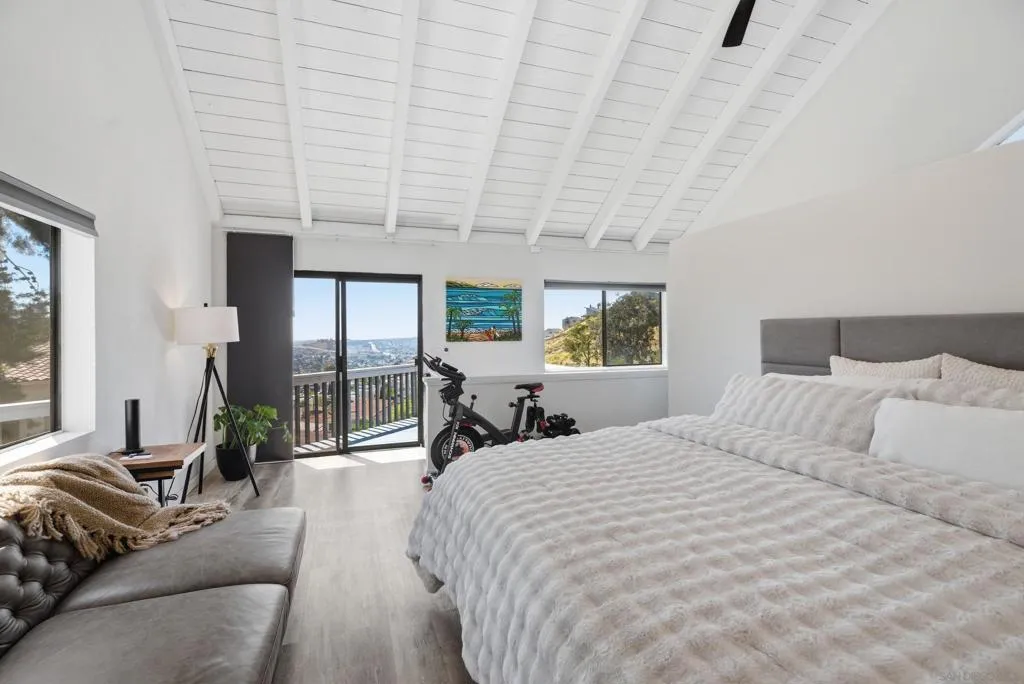 Perched high above Sweetwater Reservoir in the coveted Dictionary Hill neighborhood, this one-of-a-kind architectural retreat offers the rare feeling of living in your own private treehouse—where sweeping panoramic views stretch from the reservoir to the Pacific Ocean, and a cool ocean breeze flows year-round. Designed to impress, the dramatic living room showcases soaring 25-foot exposed beam ceilings, expansive two-story windows that flood the space with natural light, a stunning stone fireplace, and a private balcony perfectly positioned to capture the surrounding scenery. The renovated kitchen blends luxury with functionality, featuring sleek quartz countertops, soft-close cabinetry and pull-out drawers, an oversized center island with abundant storage and recessed lighting. High-end appliances include a Sub-Zero refrigerator, Viking wine fridge, Viking beverage fridge, and a newer Viking dishwasher - ideal for both everyday living and entertaining. The top floor is dedicated to an exceptional primary suite retreat, offering unmatched privacy and breathtaking views. Enjoy your 2 separate, private decks, skylights, custom California Closet system, and motorized shades—creating a serene escape above it all. Two additional spacious bedrooms on the main level each feature direct access to private decks, extending indoor-outdoor living throughout the home. See Supplement section for additional insight! Thoughtful upgrades elevate every corner, including fresh interior paint, modern lighting and hardware, ceiling fans throughout, custom solar shades, new stair railings, upgraded electrical for seamless TV mounting, and a striking Precision garage door. Additional enhancements include a whole-house PureAgain water filtration and alkaline system, Blink and Ring security system, new skylight, and drought-tolerant refreshed landscaping. Energy efficiency meets sustainability with 16 fully paid solar panels, keeping utility costs low while maximizing comfort. A rare opportunity to own a truly distinctive home that combines bold architectural design, modern luxury, and an unbeatable indoor-outdoor lifestyle—all just minutes from San Diego amenities. Move-in ready and eligible for FHA and VA financing. Come live the dream!