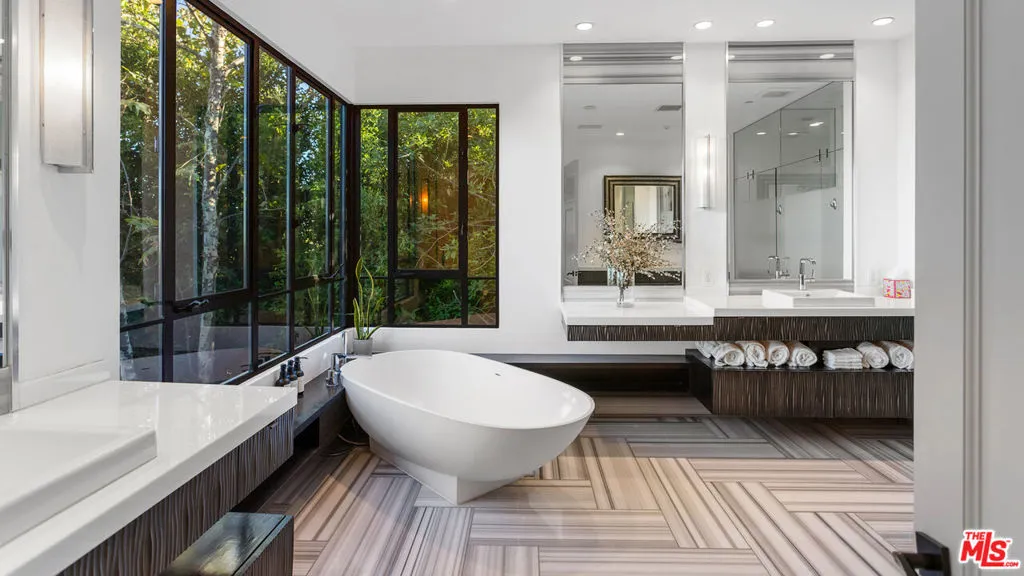 Celebrity-owned gated compound estate with panoramic city views positioned on approximately half an acre on the Sunset Strip, 7801 Hillside Avenue is a rare, fully furnished compound estate offering a level of privacy, scale, and presence seldom found in the Hollywood Hills. Formerly owned by global music icon Rihanna, the property carries a distinct cultural provenance, now paired with a refined, turnkey living environment appointed with new Restoration Hardware interiors throughout. Behind gates, the estate unfolds as a true compound a primary residence, separate guest house, and private screening theater, all set within expansive grounds designed for both discretion and entertaining. The primary suite commands sweeping views across the Los Angeles skyline, while the guest house enjoys its own elevated vantage point, offering guests an equally dramatic perspective of the city. Daylight transitions to a luminous panorama of city lights, creating a cinematic backdrop throughout the residence. Interiors are designed with volume and flow, opening seamlessly to multiple terraces and outdoor living spaces. A resort-style pool and spa anchor the grounds, surrounded by curated lounge areas and mature landscaping that enhance the estate's sense of seclusion. A gated motor court provides secure arrival and privacy, reinforcing the property's identity as a true hillside compound, a rarity in this enclave. Moments from the Sunset Strip, Beverly Hills, and the studio corridors, the estate offers immediate access to Los Angeles' cultural and creative centers while maintaining complete separation from the city below. Properties of this scale, with -acre grounds, guest house, theater, designer furnishings, and unobstructed city views, rarely come to market as turnkey lease opportunities. A residence defined by privacy, provenance, and presence designed for those seeking a fully realized Los Angeles estate experience. Private showings by appointment.