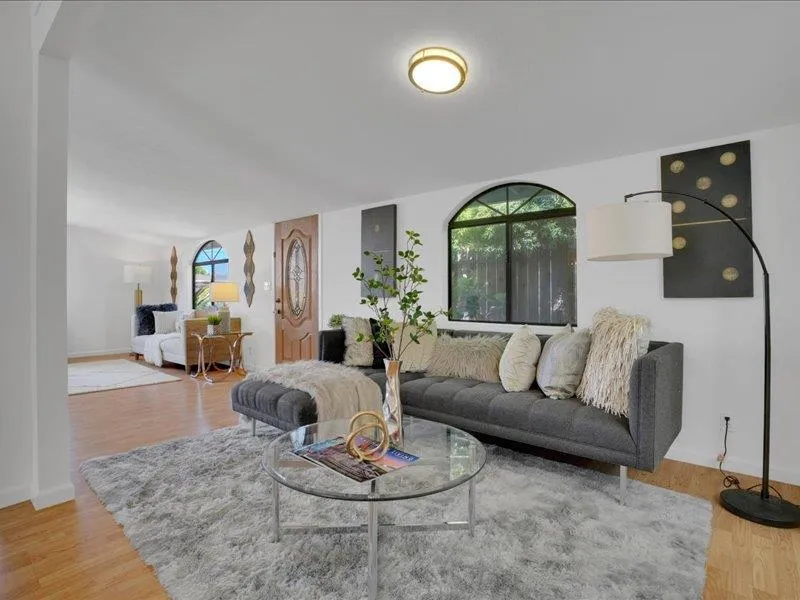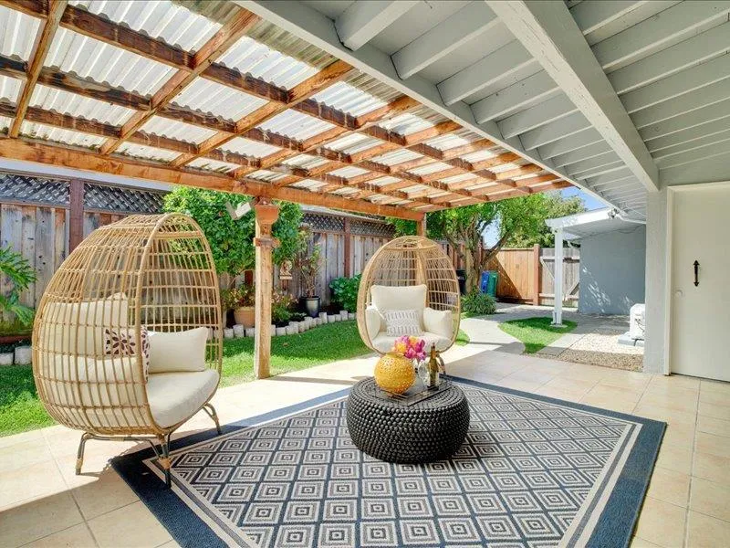 Experience the perfect blend of iconic Eichler design & modern livability in this beautifully refreshed single-story home w/ fresh paint inside & out. 4BD/3.5BA includes a private studio with its own entrance, kitchenette & full bath ideal for guests, multi-generational living or potential income opportunities. The expansive open-concept living space w/ gleaming floors, vaulted beam ceilings & a flexible layout are designed for effortless entertaining & everyday living. The eat-in kitchen w/ generous breakfast nook flows through French doors to the spacious garden backyard w/ covered patio & mature fruit trees creating the ultimate indoor-outdoor California lifestyle. The serene primary suite offers double mirrored closet doors and a private bath for a peaceful retreat, while 2 additional bedrooms and 1.5 baths provide versatility. Additional features include air conditioning, a separate laundry room, detached storage shed, and driveway/street parking. Ideally located in a prime Hayward location near commuter routes, public transportation, St. Rose Hospital, Mt. Eden Park, schools, shopping, and dining, this home offers both convenience & opportunity. Don't miss your chance to experience this rare Eichler with added flexibility & endless potential.