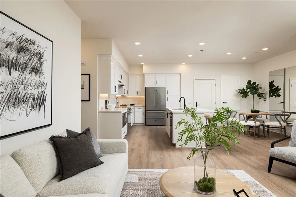 Some buildings are designed to impress from a brochure. This one was built to perform in real life. Constructed to a sound attenuation standard that exceeds California's own recommendations, 414 Main was engineered with an intentionality that most luxury buildings never bother to consider. The kind of detail that only reveals itself the moment you close the door and realize how quiet it is. The floor plan of this particular unit was designed to maximize how the space is actually used, not just how it photographs, making it the most functional layout in the building and a rare find on the top floor at this price point. Step inside and nearly ten foot ceilings draw the eye out through large windows toward something unexpected for a Downtown address: unobstructed views of Saddleback Mountain to the east and the roofline and treetops of Fashion Island to the south. Bertazzoni appliances, quartz countertops, counter to ceiling backsplash, and elegantly lit vanity sconces are the kind of finishes that hold up to daily life rather than just showroom scrutiny. Both bedrooms are ensuite, each with a frameless glass shower, soaking tub, and a generous walk in closet. Then there is the location, specifically where on Main Street this building sits. The first three blocks below carry the full energy of Surf City with dozens of restaurants, bars, and the buzz of Surf City Nights every Tuesday. By the 4th block, where 414 Main stands, that energy becomes ambient rather than immediate. Close enough to walk to all of it. Removed enough to come home to something quieter. The rooftop common deck faces straight down Main Street toward the Pier with fire pits lit, BBQs going, and a view that most people in Huntington Beach only dream about. Private EV charging, surf and beach storage, and bike lockers round out a building designed for the way people here actually live.