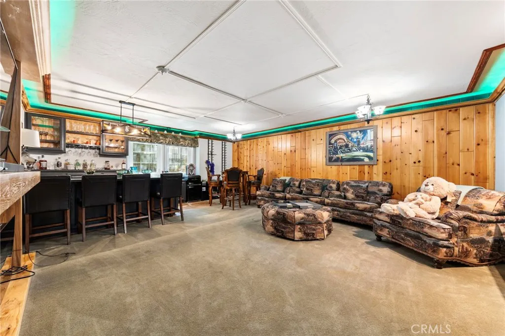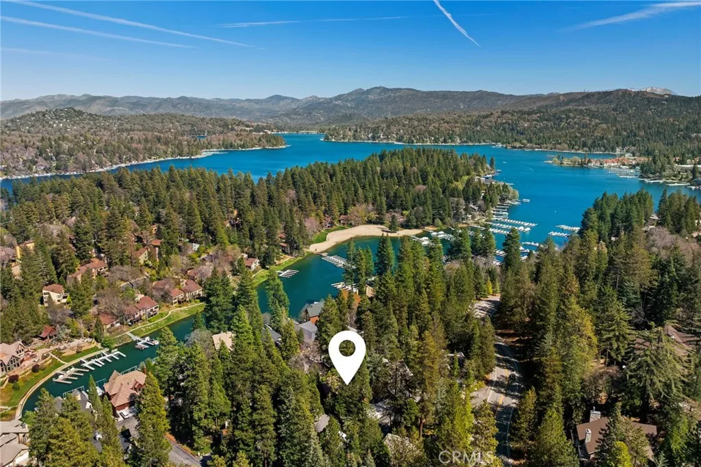 Set behind the gates of Meadow Shores, this custom-built Lake Arrowhead retreat blends mountain charm, elevated comfort, and countless recreation choices including coveted lake rights and a private dock. Designed for both relaxation and entertaining, the 4-bedroom, 3-bath home comes fully furnished with everything you need to move-in and begin serene living immediately. Walking through the front door a dramatic two-story foyer with soaring ceilings sets the tone, leading to formal living and dining areas highlighted by fireplaces and rustic design elements, while the open-concept kitchen and family room showcase custom cabinetry, premium appliances, and seamless access to expansive wrap-around decks and a private spa area with hot tub. Thoughtfully designed layout with multiple indoor and outdoor gathering spaces. A large game room with a full bar provides the perfect setting for hosting fun-filled events, while upstairs, the spacious primary suite offers a true retreat with its own fireplace, spa-inspired bath, and dual walk-in closets, accompanied by three additional bedrooms and a beautifully updated guest bath. The grounds are ideal for outdoor enjoyment, complete with a fenced yard, patio, and charming accents, all just minutes from Lake Arrowhead Village and Country Club. Other features include dual air conditioning, backup generator, ample parking, and direct level entry from the attached two-car garage. If you are looking for a home with a rare combination of privacy, luxury, functionality, and refined lakeside living, you have found it here.