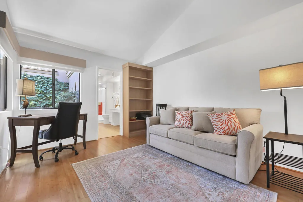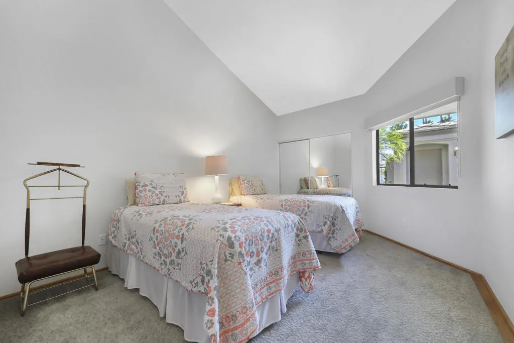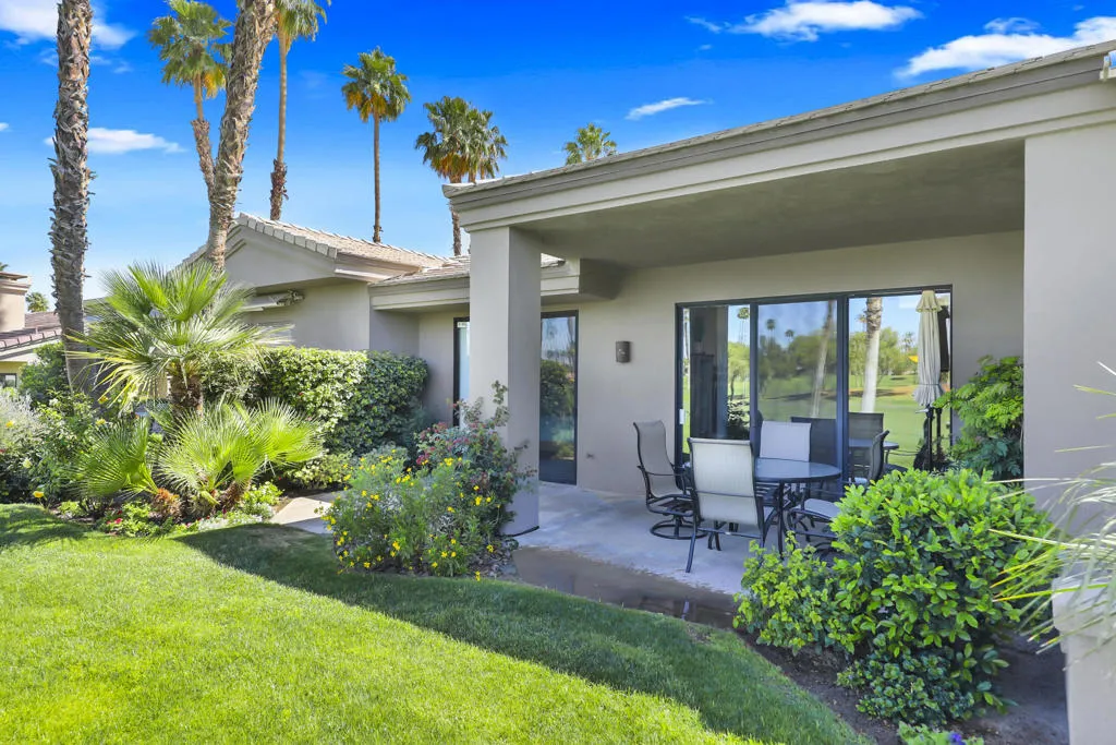 This beautifully maintained 3 BR, 3 BA, 1673 SF home in Palm Valley CC offers the perfect blend of comfort, style and effortless indoor-outdoor living. This could be a great investment property, located on a quiet cul-de-sac just a short walk from the 2 Lobelia community pools. Enjoy breathtaking double-fairway golf course and mountain views from this bright, airy home featuring warm bamboo flooring and an open layout. The remodeled kitchen shines with granite countertops, stainless steel appliances, and a gas stove.The primary suite with mountain views is private, complete with generous closet space and a well-appointed ensuite bath. The 2 additional ensuite bedrooms at the other end of the condo offer flexibility for guests, a home office, or den. Offered partially furnished, with kitchen full of necessary items. Palm valley Country Club has 47 community pools and jacuzzis, an Olympic- sized pool, 2 golf courses, 12 tennis cours, 12 pickleball courts, and a 100,000 SF Clubhouse with restaurant and lounge, as well as a casual restaurant with outdoor seating. Known for fun, welcoming atmosphere, this is Desert living at its best.