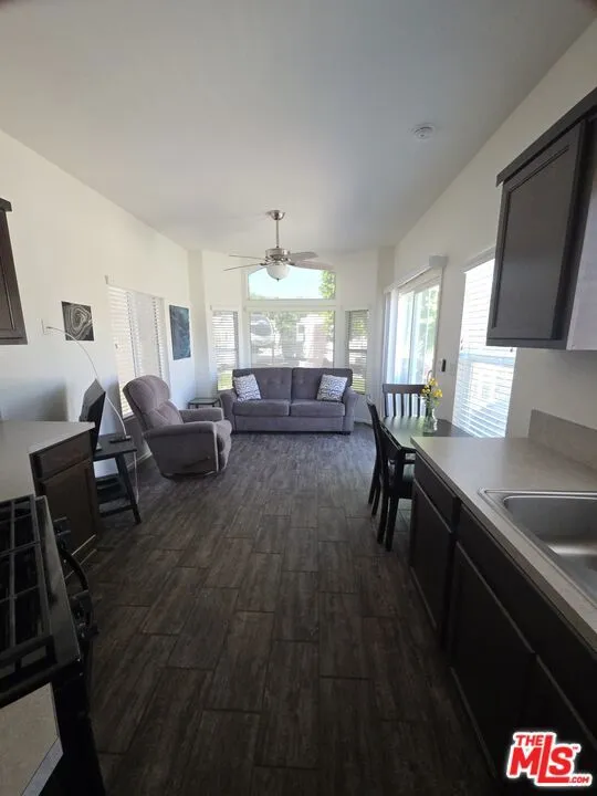 This 2019, new Park model located close to the front gate and Sat 'B' with pool, jacuzzi and laundry facility. It has only a few months of being lived in, during a couple of 'seasons'. It is ready to move in and add your design to make it your own. It has a patio off the back slider that over looks a large greenbelt, with a shade tree. It sits on an oversized lot with parking for a car and a gold cart and still have a private patch of grass area. It includes a shed, for outdoor storage. The street ends in a cul de sac, so very little traffic. This all located in a 55 community that has a 3 par golf course, chipping green, putting green, 9 hole mini golf, pickleball and tennis courts, bocce ball, an indoor shuffleboard courts, 2 clubhouses with pools and Jacuzzies and an additional 4 satellites with pool, jacuzzi and mail boxes. This is all within a 24 hour gate guarded community ,of 801 lots, that consist of a combination of Park Models and RV lots, where you own the land. The resort has a limit of 270 day occupancy. It is. a perfect place to spend your holidays in the sunshine.