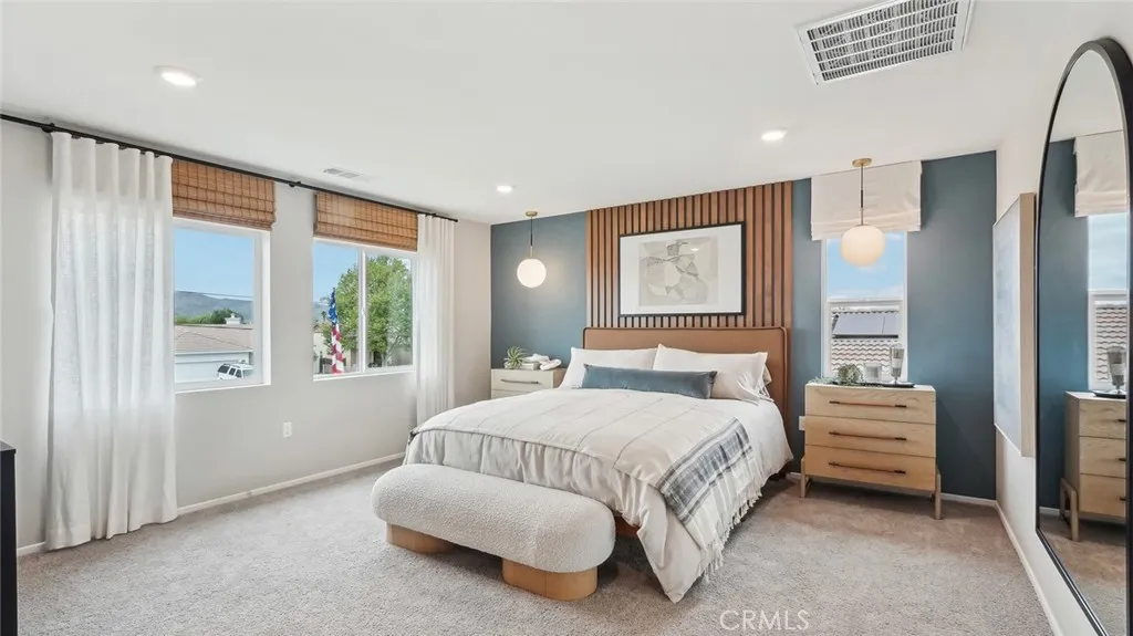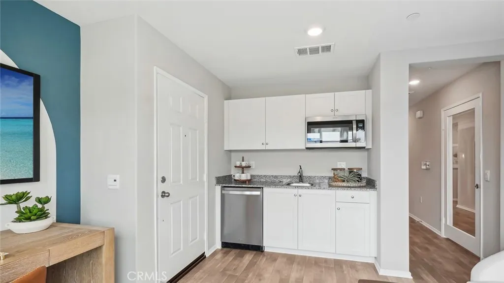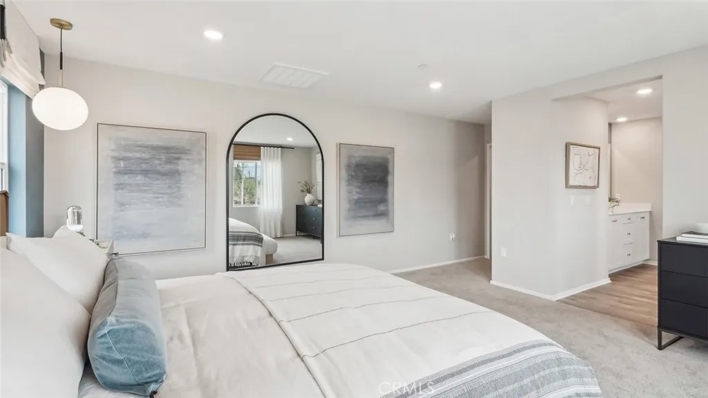 MODEL HOME - This Plan 2,480 square foot MultiGEN suite home on a corner lot has a California Traditional facade and a separate entry on the front side of the home to the suite with a lounging area, kitchenette with sink, microwave, and mini-refrigerator, stackable washer and dryer closet, bedroom and a full bathroom. The main home has a downstairs powder bathroom, open concept great room with dining area and a kitchen island with granite counters, stainless-steel appliances, walk-in pantry, and white shaker-style cabinetry throughout. Upstairs is a Tech area, laundry room with linen closet, the primary bedroom with ensuite and walk-in closet, two additional bedrooms, and full bathroom. The home comes with Smart Home technology, is all-electric, and includes an attached 2-car garage pre-plumbed for an electric car. The front yard is landscaped and irrigated. We anticipate this home will be ready for move in June 2026.