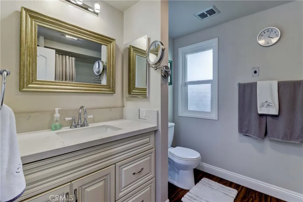 55+ Senior Community living at its finest! Beautifully remodeled 2BD/2BA Casa Blanca model in a quiet location near Gate 3, featuring desirable eastern views. This upstairs unit offers both comfort and style in one of the most sought-after areas of the community. Step into a bright, open-concept kitchen showcasing crisp white cabinetry with soft-close drawers and doors, updated countertops, tiled backsplash, recessed lighting, and stainless steel appliances including a range hood and side-by-side refrigerator with ice and water dispenser. The adjacent dining area offers additional built-in storage for convenience. The spacious living room boasts vaulted ceilings and an extended sliding glass door that opens to a shaded private balcony—perfect for enjoying your morning coffee or evening wine. Upgrades throughout include laminate flooring, smooth ceilings, crown and base moldings, dual-pane windows, LED lighting, a newer heat pump, security system, and paneled interior doors. The hallway bathroom features an updated vanity and a walk-in shower with a sleek glass enclosure. The guest bedroom includes plush carpeting and mirrored closet doors. The primary suite is filled with natural light thanks to added windows and includes a private bath area with a newly added privacy door. Monthly rent includes HOA dues, covering access to resort-style amenities, water, sewer, trash, and cable TV. Tenant is responsible for electricity, internet, and renter’s insurance. This is truly one of the finest rental opportunities in Laguna Woods—don’t miss your chance to call it home. Schedule your private showing today!