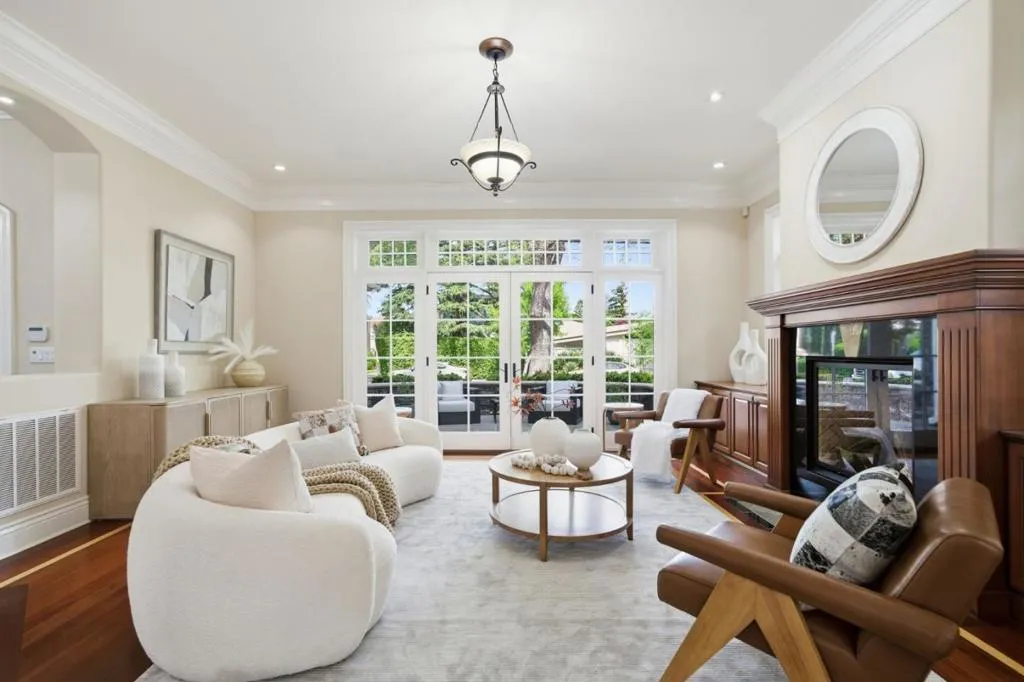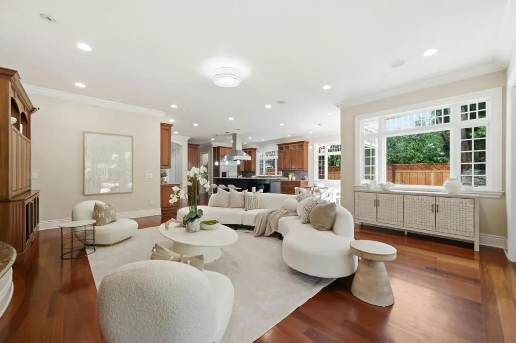 Classic design and substantial scale define this Old Palo Alto three-story estate. Brazilian cherry floors, curated lighting, and well-proportioned formal rooms are complemented by a spacious kitchen and family room combination designed for everyday living. The home has 5 bedrooms and 4 baths, including a luxurious upstairs primary suite with three customized couture closets, plus main and lower level bedrooms. The lower level also has a large recreation room with space for fitness, a theater with tiered seating, and a temperature-controlled wine cellar. Outdoor living features a covered terrace, barbecue center, and beautifully landscaped gardens in a private setting. Additional highlights include two laundry rooms, closet organizers throughout, and a detached 1-car garage and carport. Close proximity to downtown University Ave, Stanford, and excellent Palo Alto schools, including Walter Hays Elementary.
