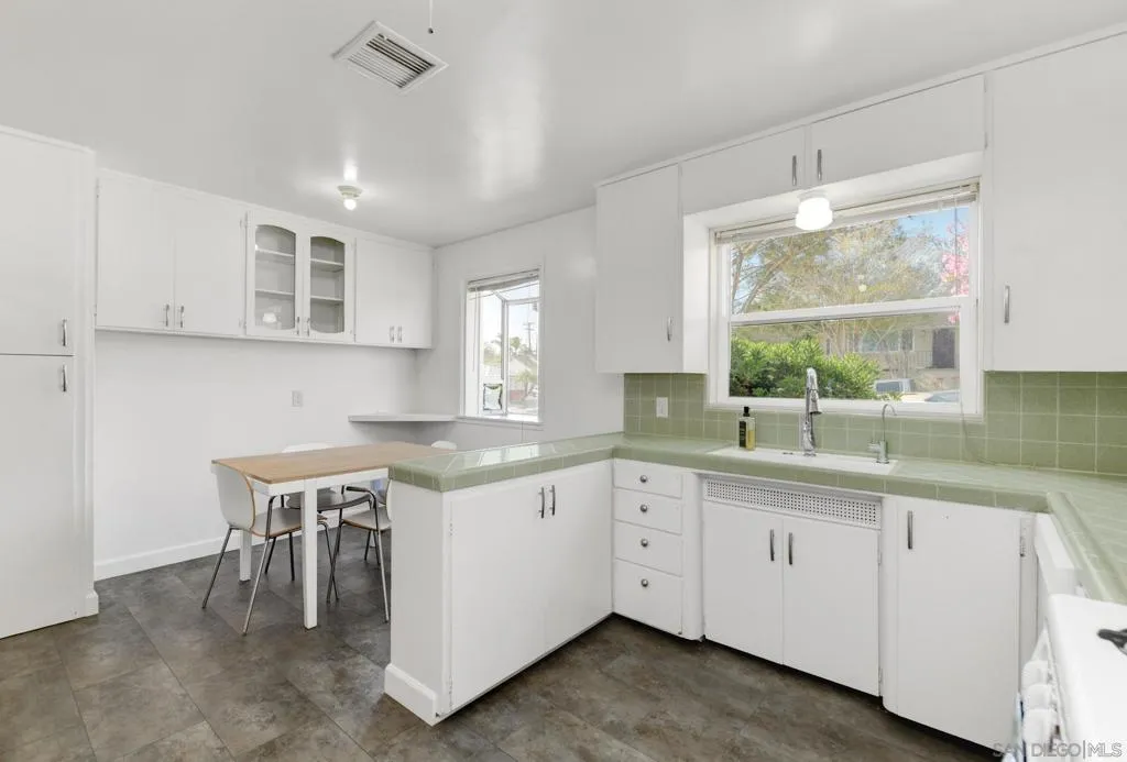 This single story, elegant, one of a kind, move-in ready Point Loma Heights residence blends timeless mid-century charm with modern upgrades, offering a seamless and functional floor plan designed for comfortable coastal living. This 3 Bedroom 2-bathroom with bonus bedroom and sunroom/den is a unique offering for current inventory. Bonus room attached to garage is spacious with a kitchenette, with its own HVAC AC split and bathroom. Bonus room is perfect for your teen, college student, guest, or a potential rental. Excellent floorplan with lots of natural light. Kitchen includes very cool vintage restored gas stove. NEW AC/Heat HVAC unit throughout, with ceiling fans in every bedroom. Solar is leased. Hardwood throughout with tile flooring in bathrooms. Recent upgrades include a freshly painted interior and common bathroom remodel. Wonderful primary bedroom with walk-in closet. Private backyard, great for entertaining, with generous patio space, perfect for hosting gatherings or enjoying San Diego's year-round sunshine. This amazing Coastal Community is close to beach, parks, all Point Loma schools and neighborhood stores. This is a perfect family home. Showing by appointment only. Offers must include pre-approval. Buyer to satisfy all measurements.