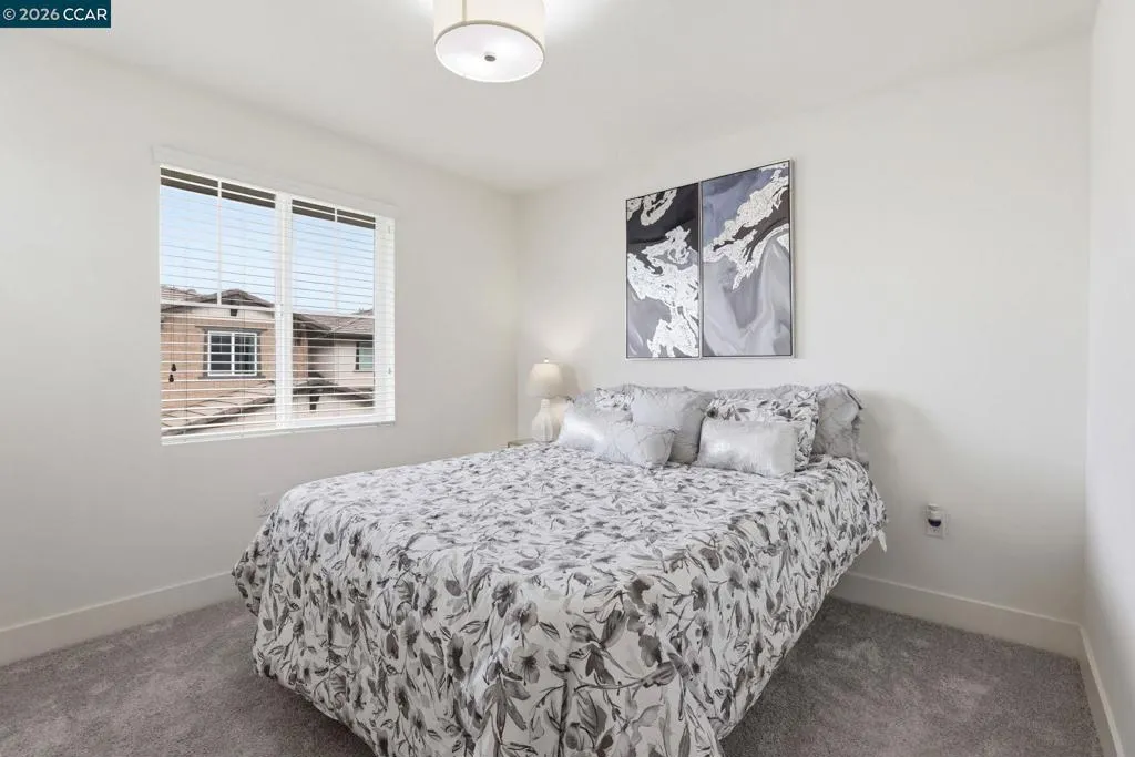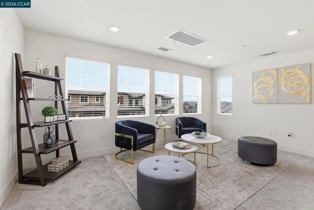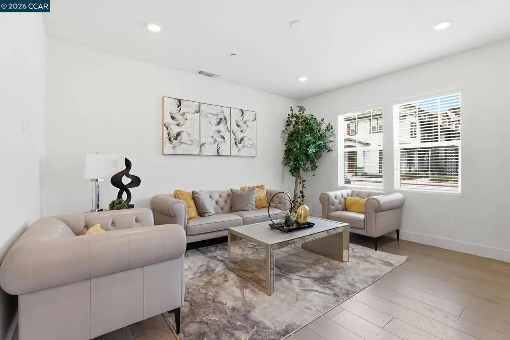 Rare East-facing end-unit townhome with 4 bedrooms, 3.5 baths, and 2,276 sq ft of beautifully upgraded living space in one of San Ramon’s most desirable communities. Bright and move-in ready, this home features a light-filled open floor plan, a gourmet kitchen with quartz countertops, oversized island, abundant cabinetry, and pantry, plus a luxurious primary suite with soaking tub, walk-in shower, and spacious walk-in closet. The private top-floor bedroom with ensuite bath and sunlit loft offers ideal flexibility for guests, multigenerational living, or a stylish home office. Premium upgrades include LVP flooring, upgraded carpet, quartz kitchen countertops, kitchen backsplash,whole-house attic fan, recessed lighting, dual-zone HVAC, tankless water heater, smart home features, and Level 2 EV charging. Enjoy resort-style amenities including pool, clubhouse, BBQ areas, parks, bocce ball, and scenic trails, all minutes from City Center Bishop Ranch, upscale dining, shopping, I-680, and top-rated San Ramon Valley schools