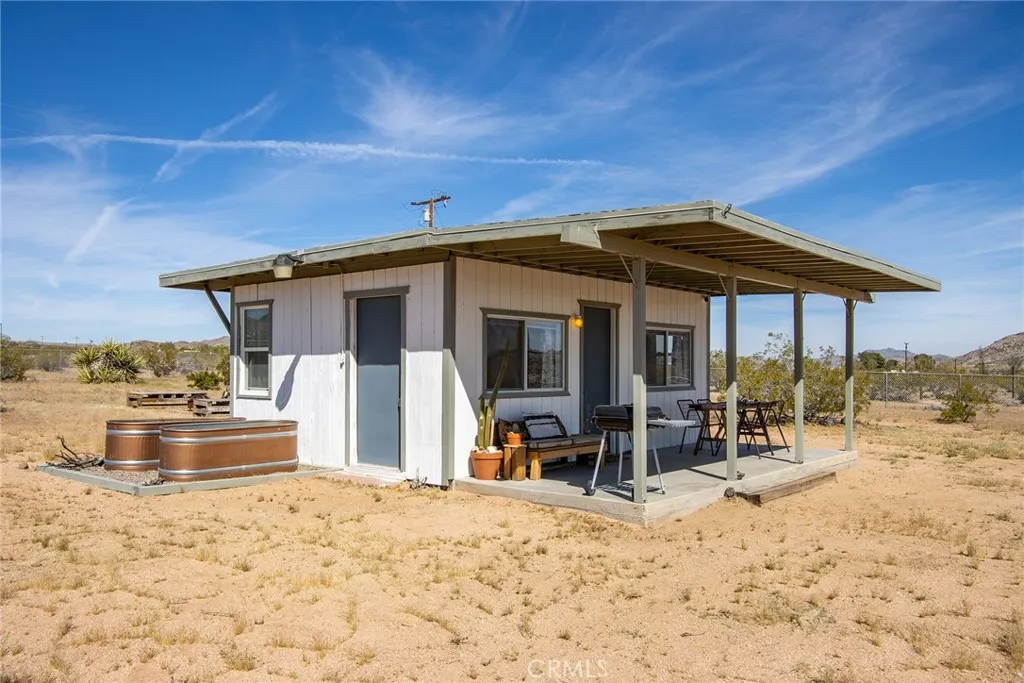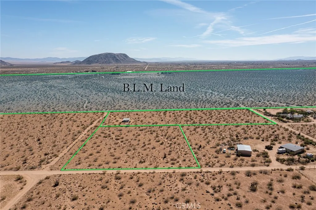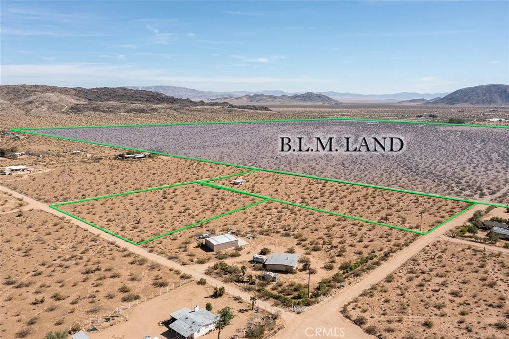 1955 HOMESTEAD RECREATIONAL CABIN: Rural location, surrounded by wilderness, yet all the modern conveniences, including Water Meter and SCE Electric Power, hot-water shower & bathroom – all updated, contemporary, modern. Ductless min-split AC/Heater for instant cool air in the summer and warm air in winter. Includes TWO PARCELS: 5-Acre Lot + additional 2.5-Acre Lot, for a total of 7.5-Acres. Cabin has new fence. Bordering the east boundary of this property stands more than 500-acres of government-owned preserved BLM land. Walk from front door of cabin to front door of The Integratron without ever crossing private property; in fact, you can walk all the way to Giant Rock without ever stepping foot on private property. Sit on the front porch, sipping morning coffee and watch the sunrise over iconic Goat Mountain. Hike from house to summit after breakfast. Immerse yourself into the Landers Experience. No reason to drive to Joshua Tree National Park with all this wilderness within walking distance of your front door. Rinse off and refresh with a warm shower after returning home. Dark sky galaxy gazing galore. Green line demarcating boundary are approximate, as property has not been surveyed. Rare opportunity for the discerning adventurist. For those interested in developing, County allows for one main house (SFR) and one guest house (ADU) per parcel; in this case one could build 4 permitted dwellings. Cash Purchase. No Seller Carry.