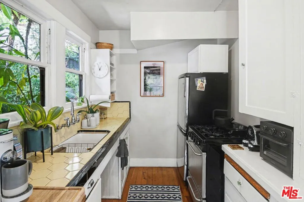 Set within a lush, garden-filled setting, this distinctive property blends classic California bungalow charm with flexible living and thoughtful design. The front residence is a beautifully maintained 1-bedroom, 1-bath bungalow surrounded by mature landscaping that creates a private, serene retreat. Warm wood floors, curated interiors, and an easy indoor-outdoor flow define the home, with multiple outdoor areas designed for both quiet living and relaxed entertaining. At the rear, a detached open floor-plan loft guest house offers a light-filled and versatile secondary living space. Vaulted ceilings with exposed beams and a lofted sleeping area create an open sense of volume, while the main level living area and kitchen provide functionality and flexibility. Ideal for guests, rental income, or a creative live/work environment. A detached office shed adds further flexibility, well-suited for work-from-home or studio use. The property backs to the historic Corralitas Red Car Trail, with nearby informal parking and direct gated access into the backyard. Layered outdoor spaces shaded by mature trees and thoughtfully composed to enhance the property's sense of privacy and connection to nature, creating a relaxed, compound-like feel. Ideally positioned near the best of the eastside, with convenient access to major freeways, Sunset Boulevard, the Silver Lake Reservoir, Echo Park Lake, and a curated mix of cafes, restaurants, and boutique shops. Los Feliz, Atwater Village, Glendale and Downtown LA are all within easy reach. A rare opportunity to own a character-rich property with versatile living options in one of Los Angeles' most sought-after neighborhoods.