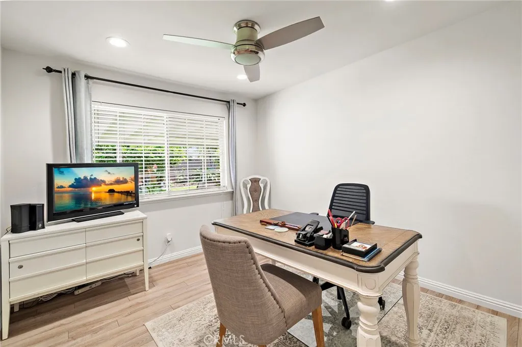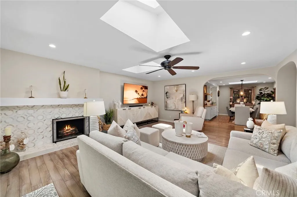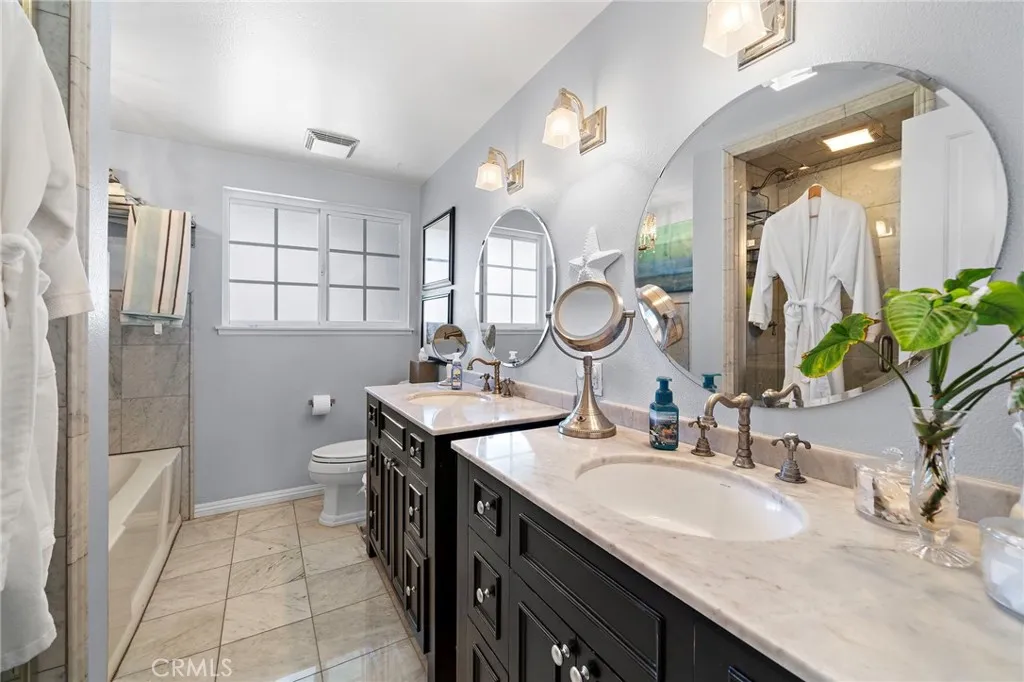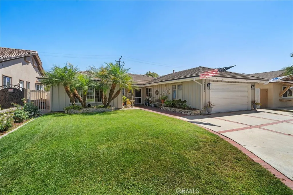 This beautifully remodelled 4 Bedroom 2.5 Bath 1837 sq ft home is situated on an extra large lot offering a very large backyard and entertaining space. The open floor plan has several sky lites offering an abundance of natural light throughout. The Kitchen is open to the family eating area and to the inviting oversized greatroom. The kitchen offers a stainless french door refrigerator, a gas cooktop with an electric oven & warming drawer and opens to the laundry room and direct access 2 car garage. Enjoy Central Air and Newer Vinyl flooring throughout and a gorgeous carrara marble gas fireplace in the greatroom which opens to the patio area and oversized landscaped back yard oasis. The expanded patio area creates a wonderful space for entertaining and family life along with a huge lush green backyard offering orange, lemon and lime trees! Inside the expanded Master Suite offers vaulted beamed ceilings, window shutters and an En Suite Bathroom with Double Vanities and a WalkIn Shower. Three more bedrooms and Guest bath complete the floorplan plus you will find an abundance of storage throughout. This home comes turnkey in a friendly desirable neighborhood with zero traffic noise, close to local schools and just minutes from the beach!
